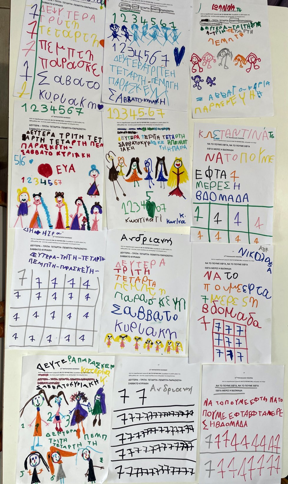 Ο αριθμός 7 μέσα από τις μέρες της εβδομάδας. Παιχνίδια και φύλλα εργασίας μαθηματικών και γραφής με τον αριθμό 7 και τα ονόματα των ημερών της εβδομάδας .
