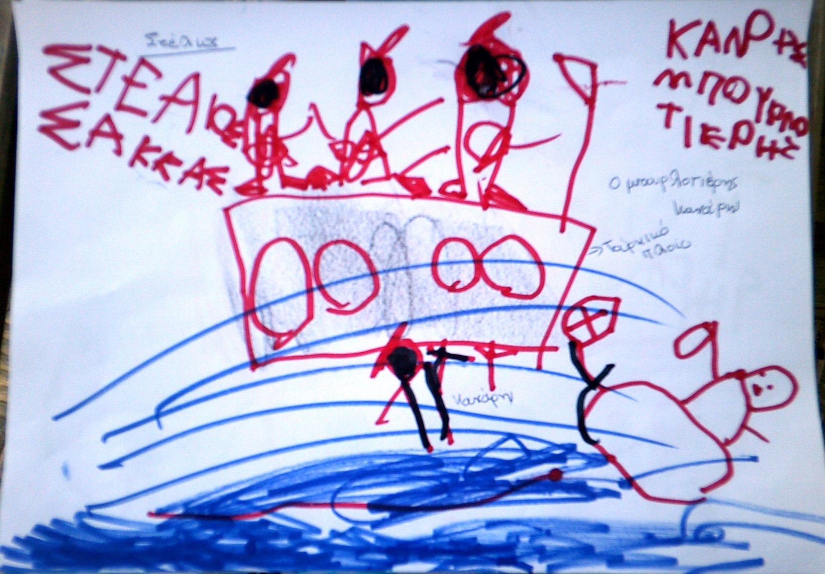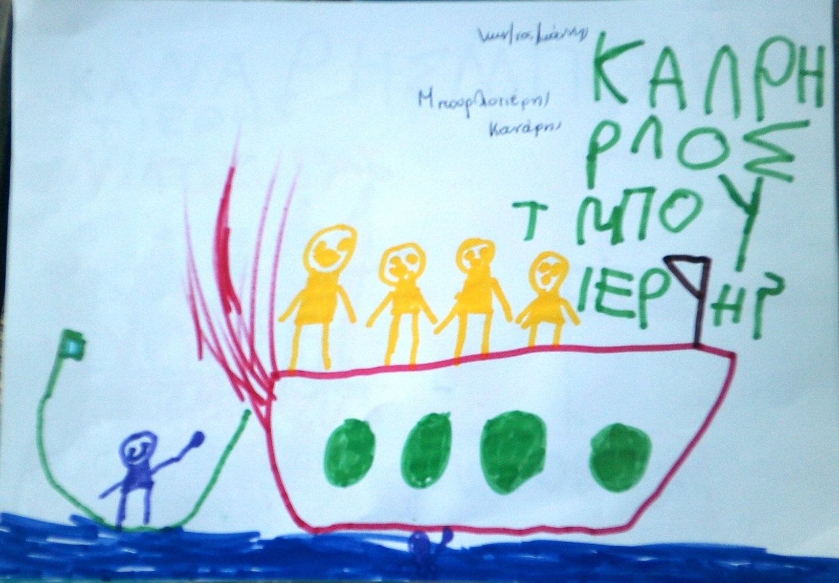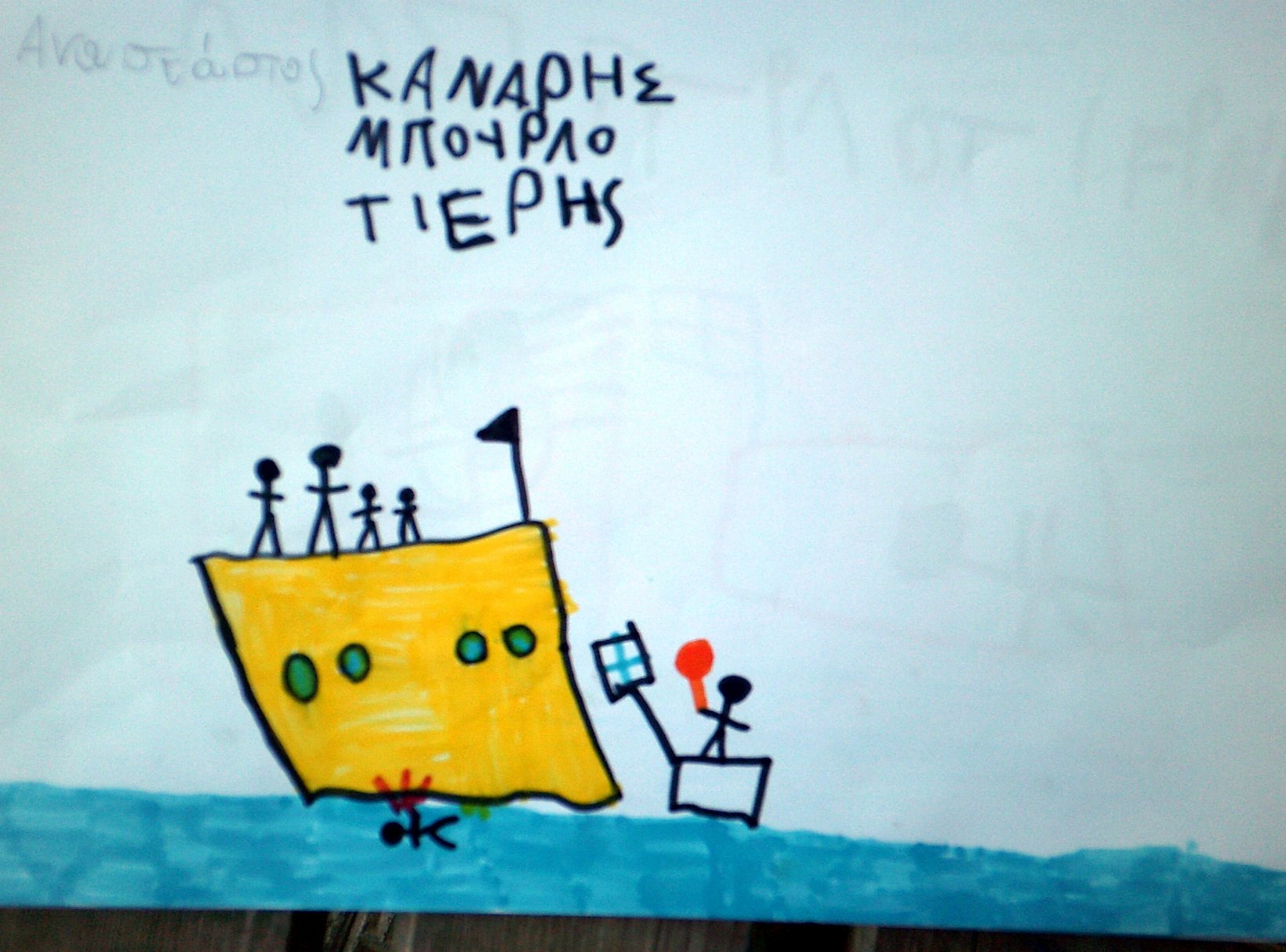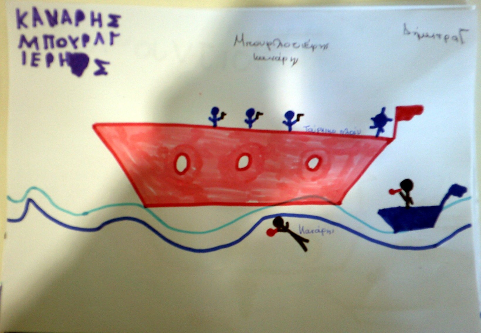Τα παιδιά ζωγράφισαν τον Κανάρη που βάζει μπουρλότο στην Τουρκική ναυαρχίδα κι έγραψαν όπως μπορούν ΜΠΟΥΡΛΟΤΙΕΡΗΣ ΚΑΝΑΡΗΣ