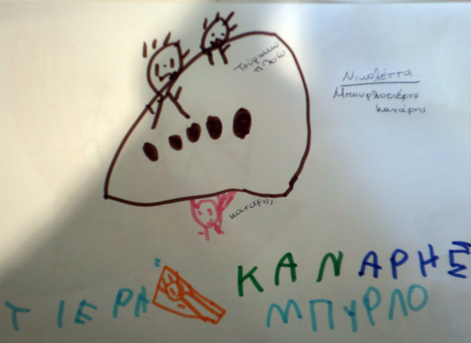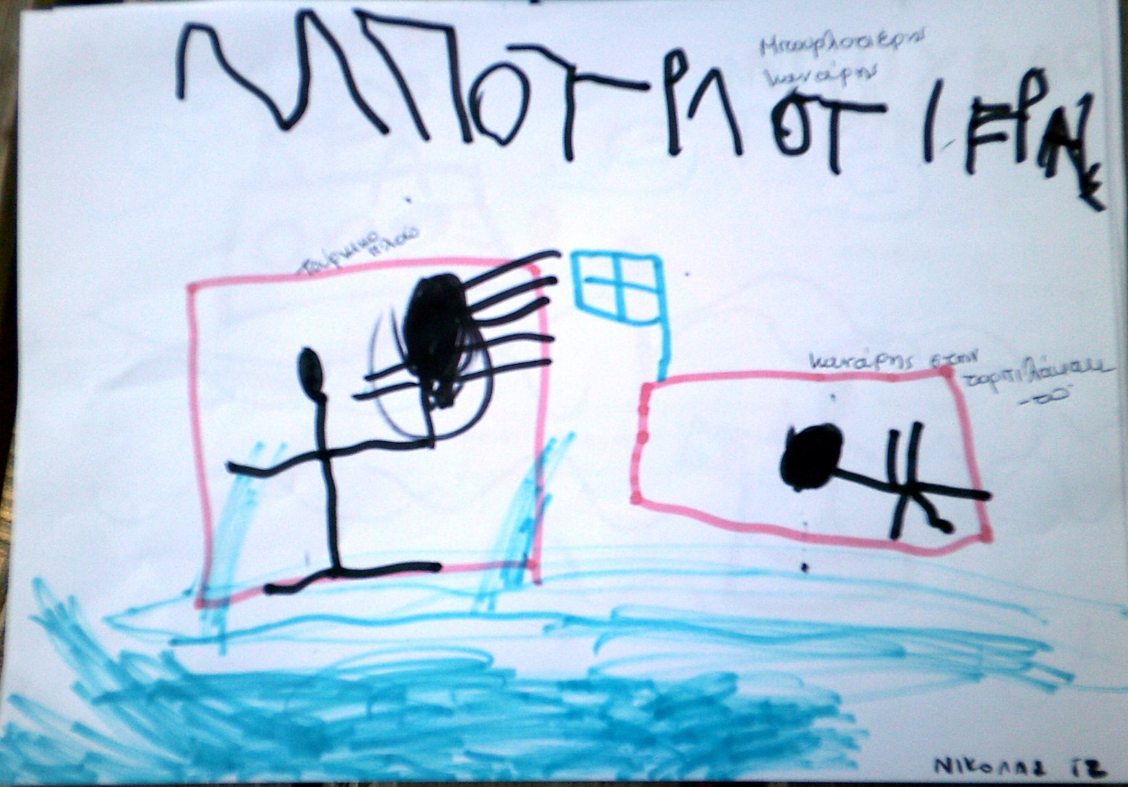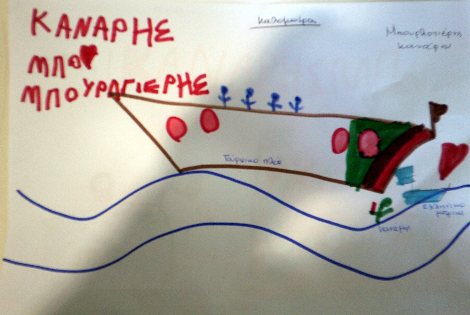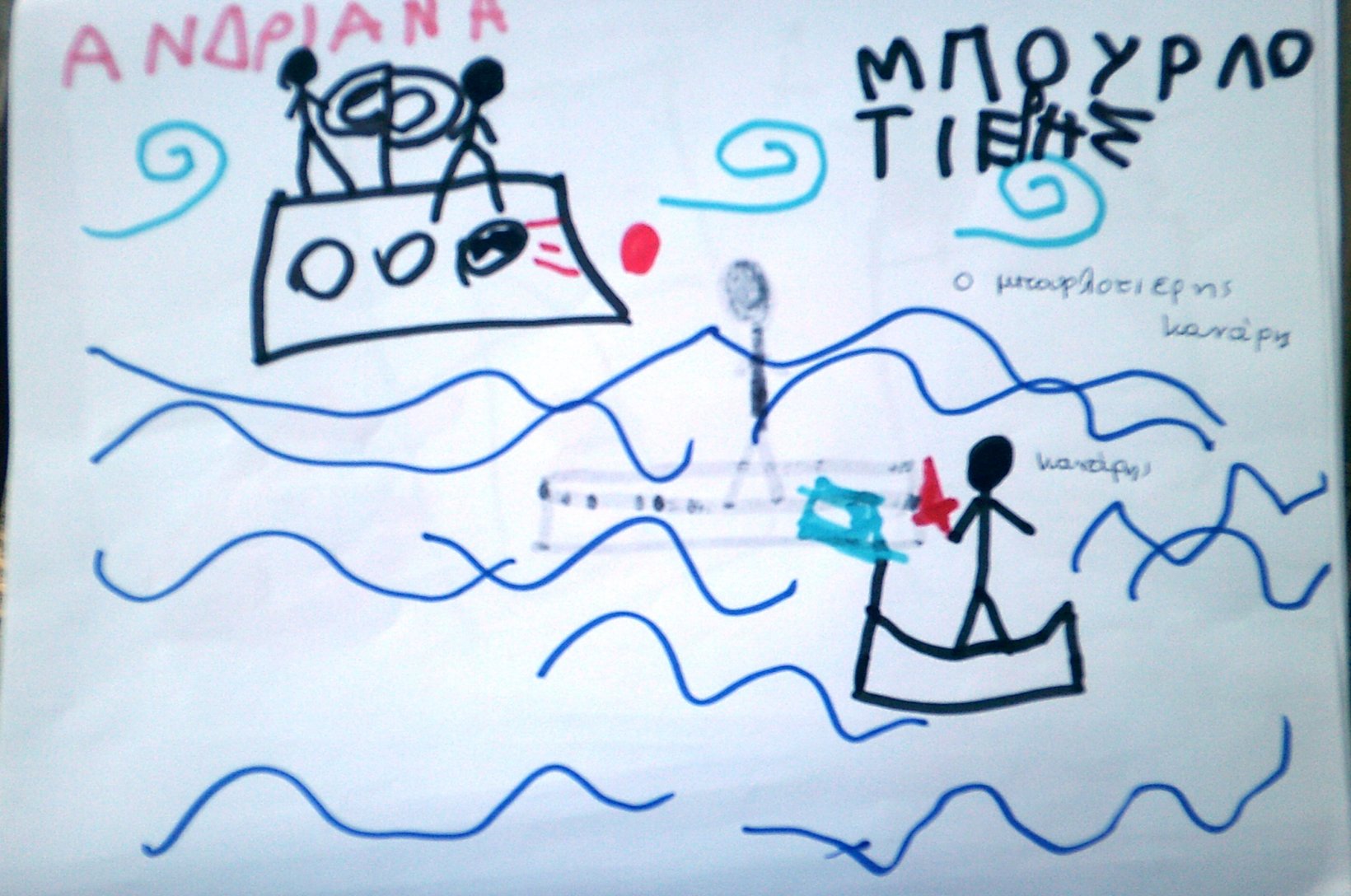 Τα παιδιά ζωγράφισαν τον Κανάρη που βάζει μπουρλότο στην Τουρκική ναυαρχίδα κι έγραψαν όπως μπορούν ΜΠΟΥΡΛΟΤΙΕΡΗΣ ΚΑΝΑΡΗΣ