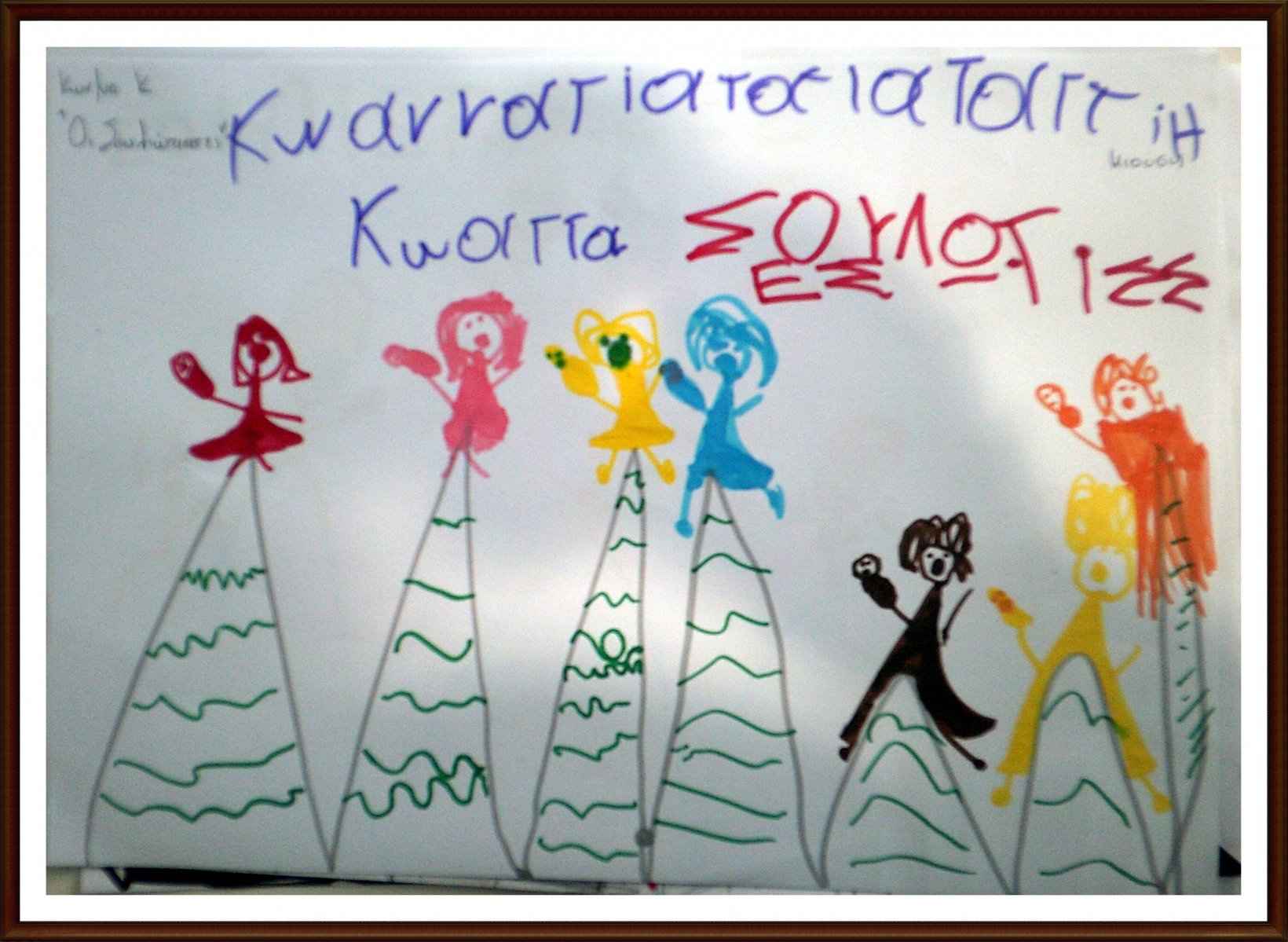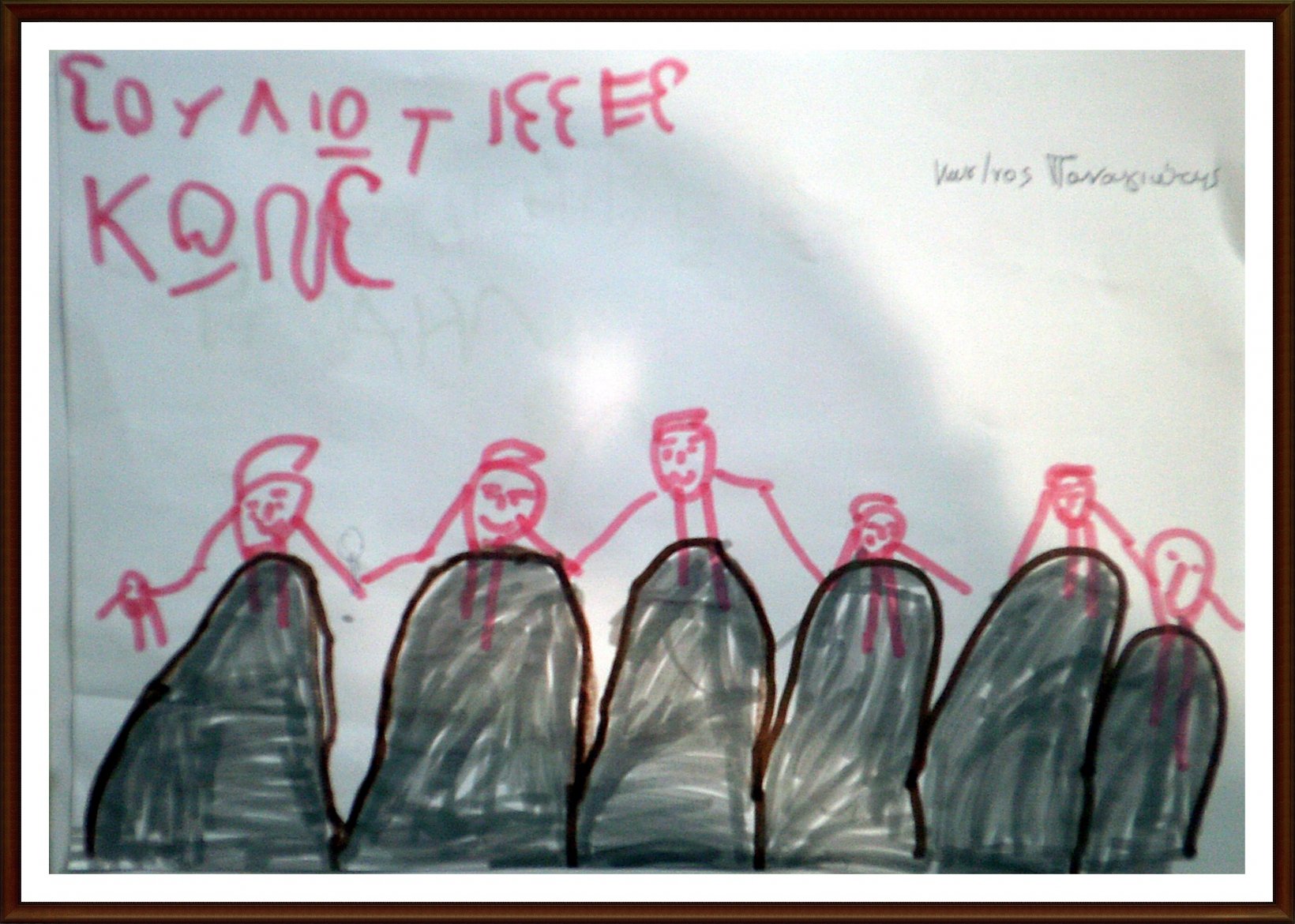 Τα παιδιά ζωγράφισαν τον χορό του Ζαλόγγου κι έγραψαν όπως μπορούν την λέξη ΣΟΥΛΙΩΤΙΣΣΕΣ