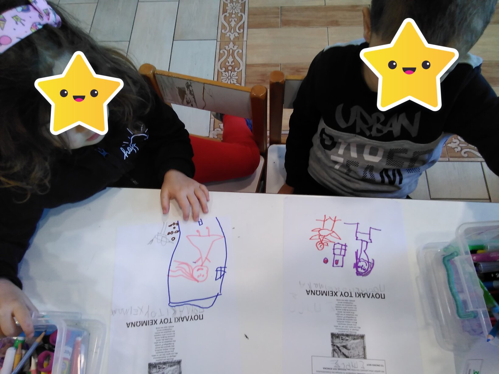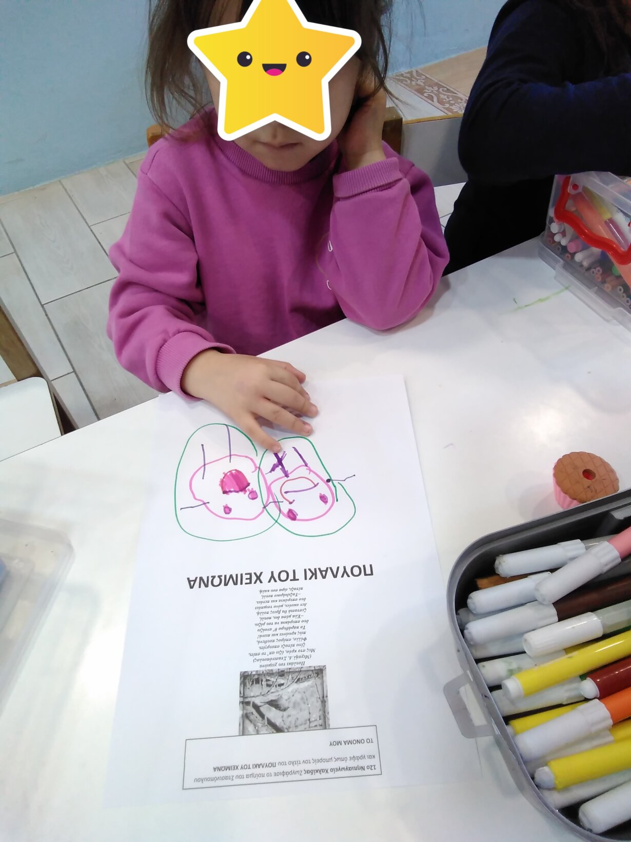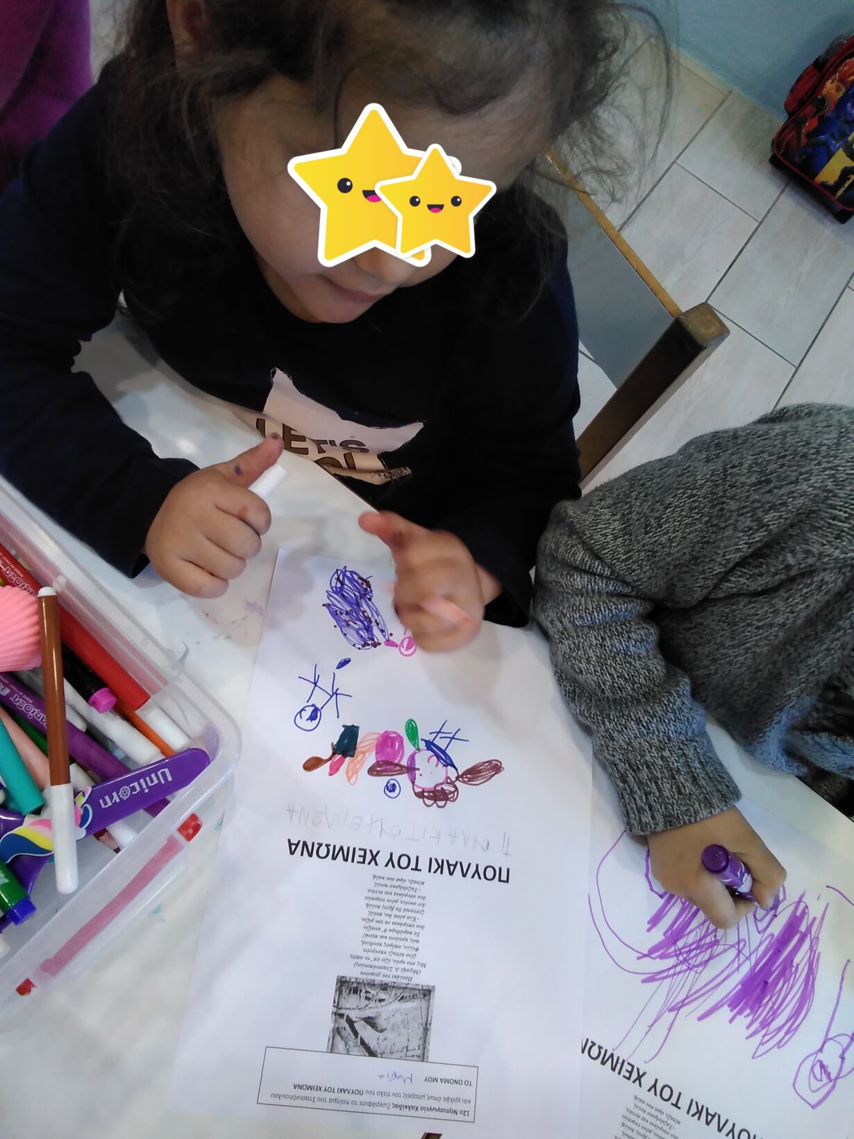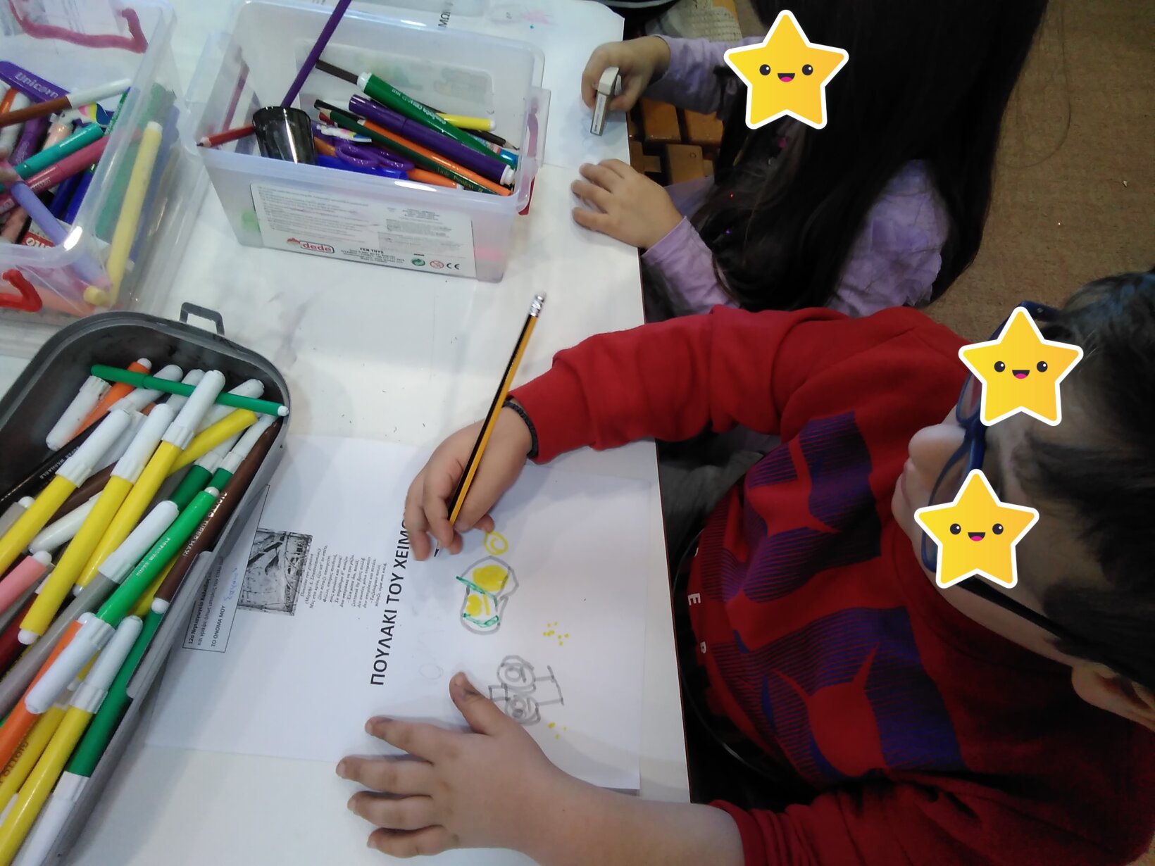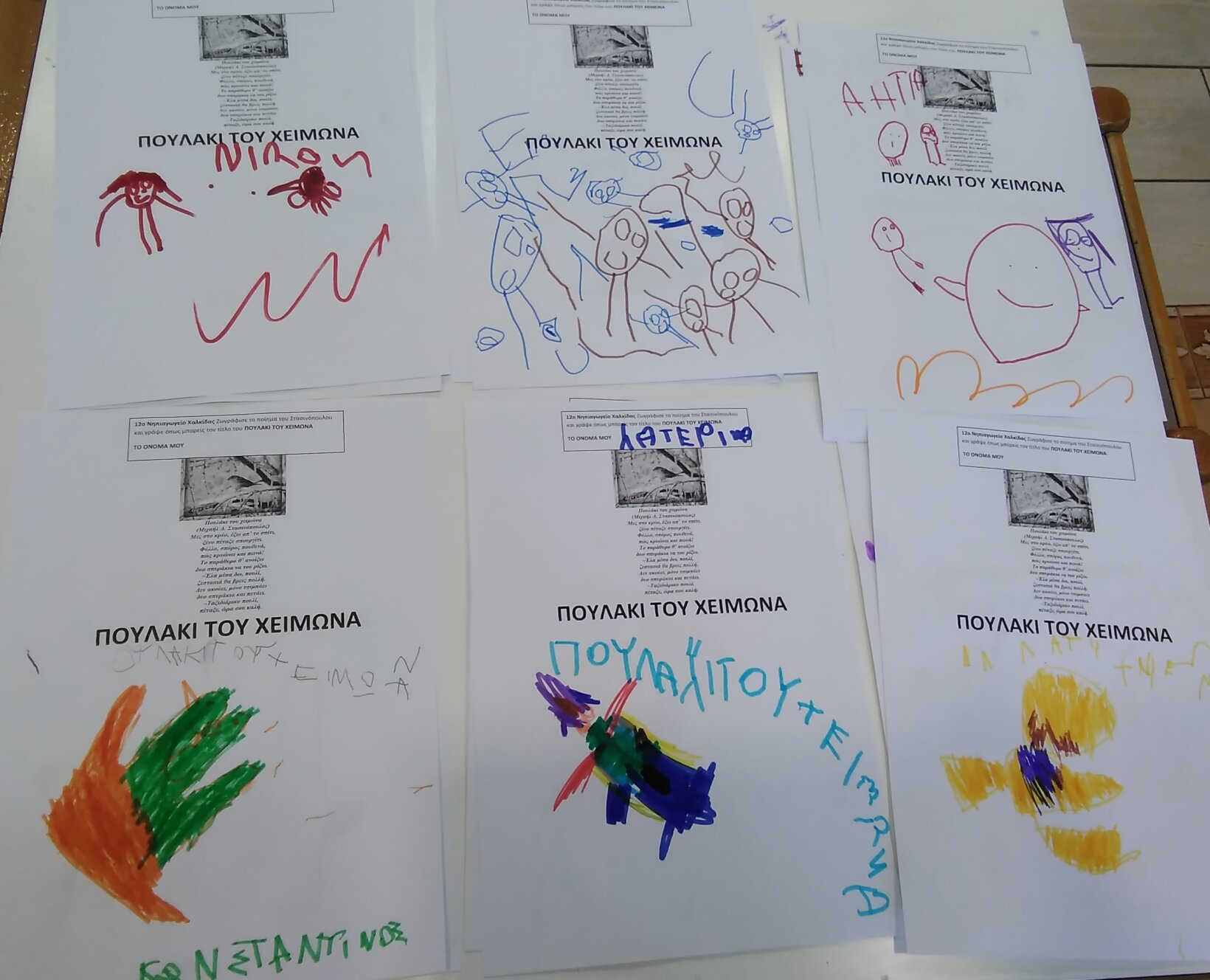 Τα παιδιά ζωγράφισαν κι έγραψαν όπως μπορούν τον τίτλο του ποιήματος.