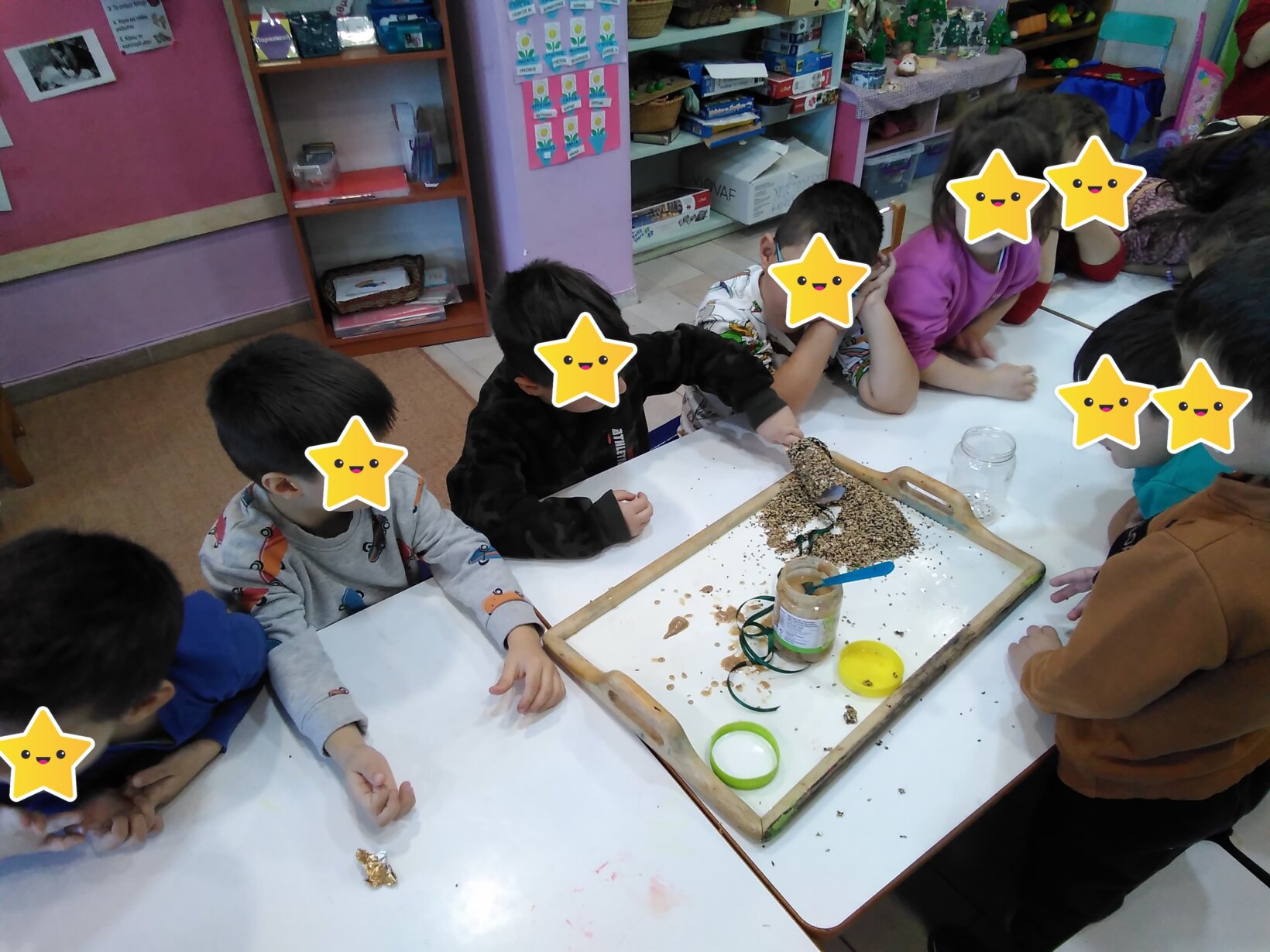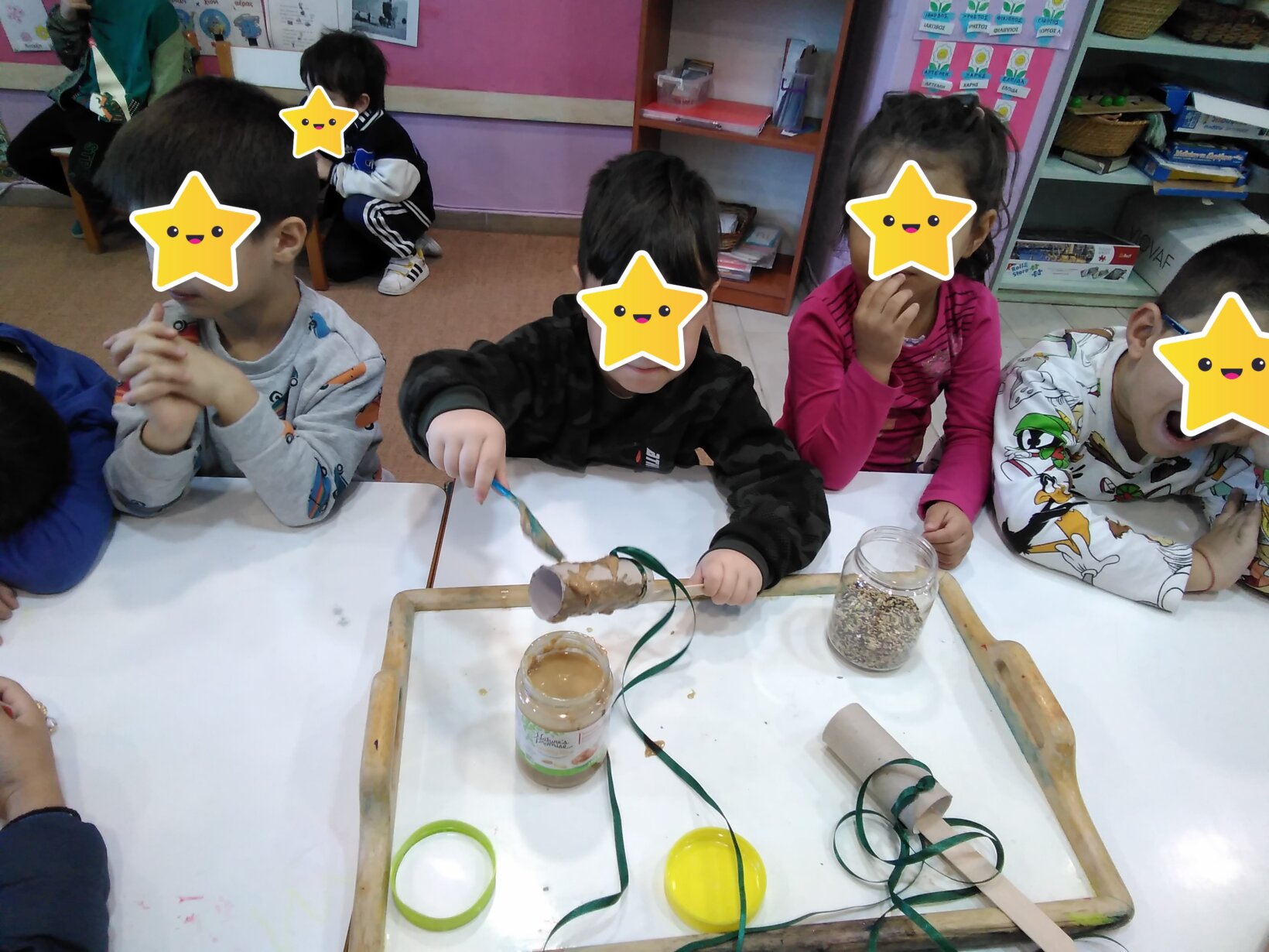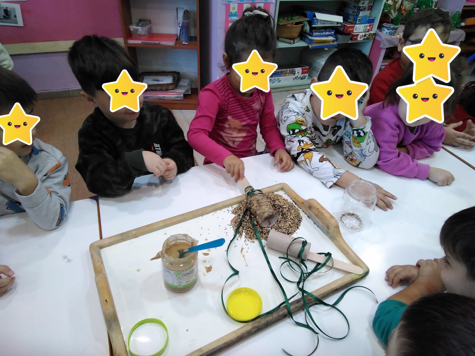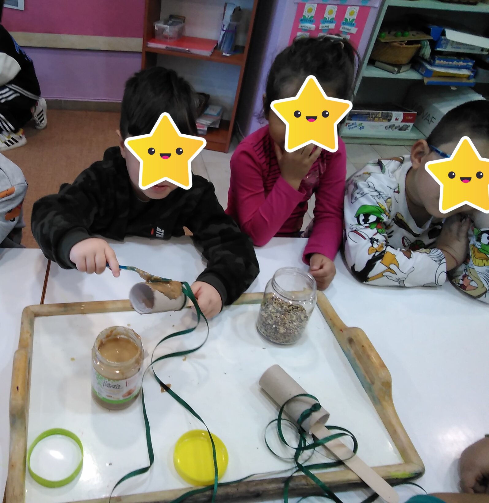 Τα παιδιά έφτιαξαν ταίστρες για τα πουλάκια με φυστικοβούτυρο και ρολό χαρτί