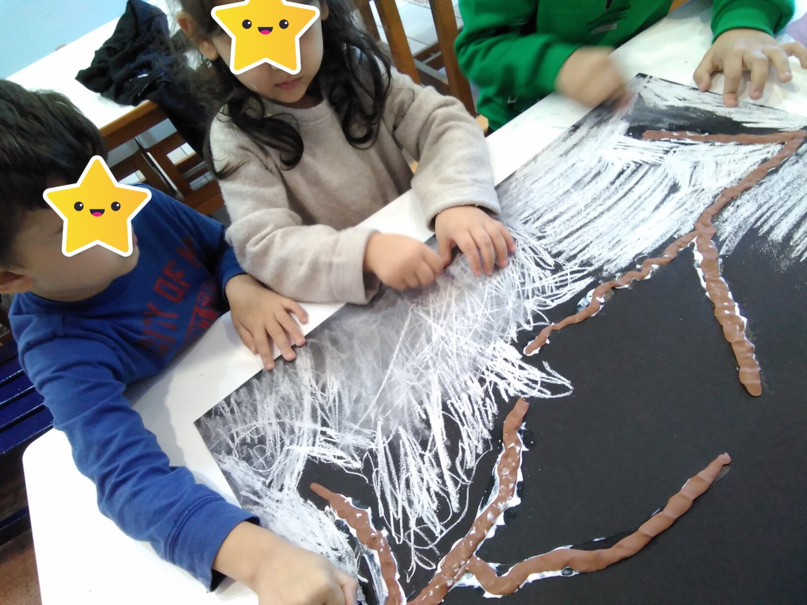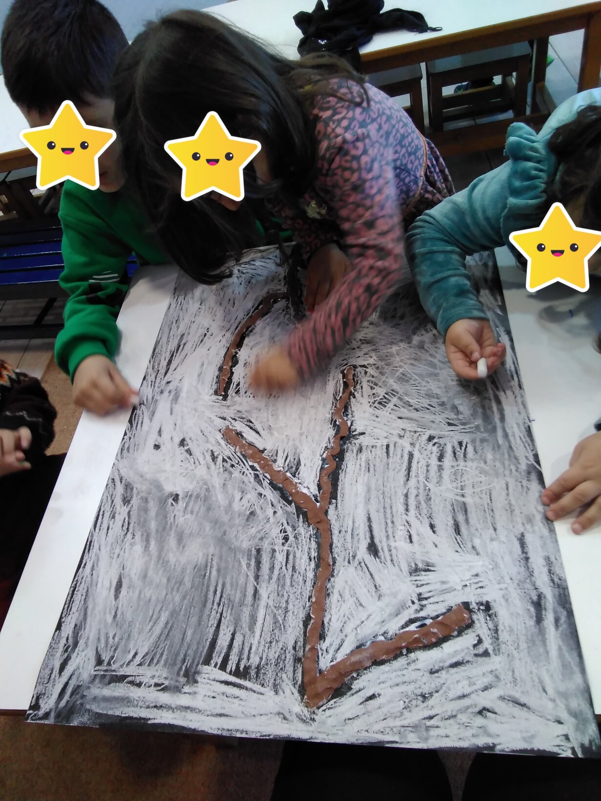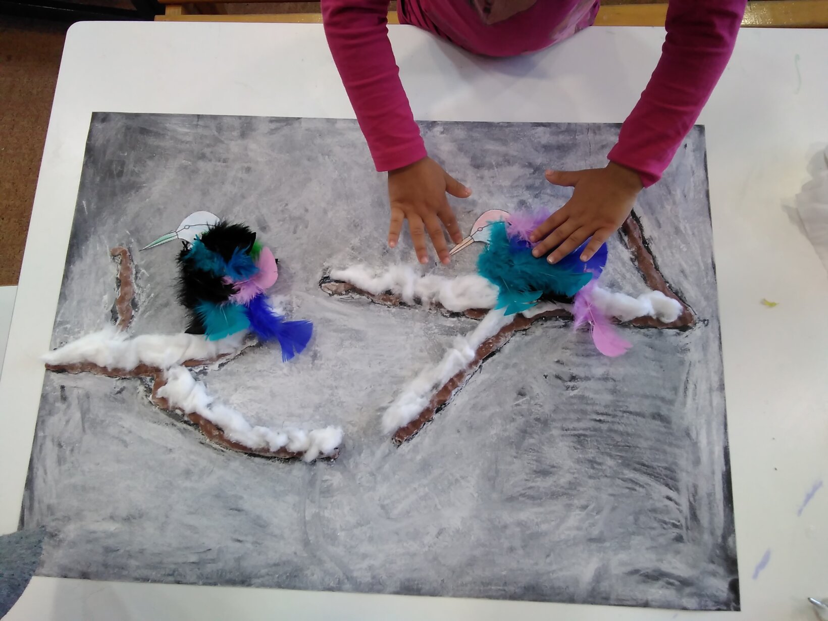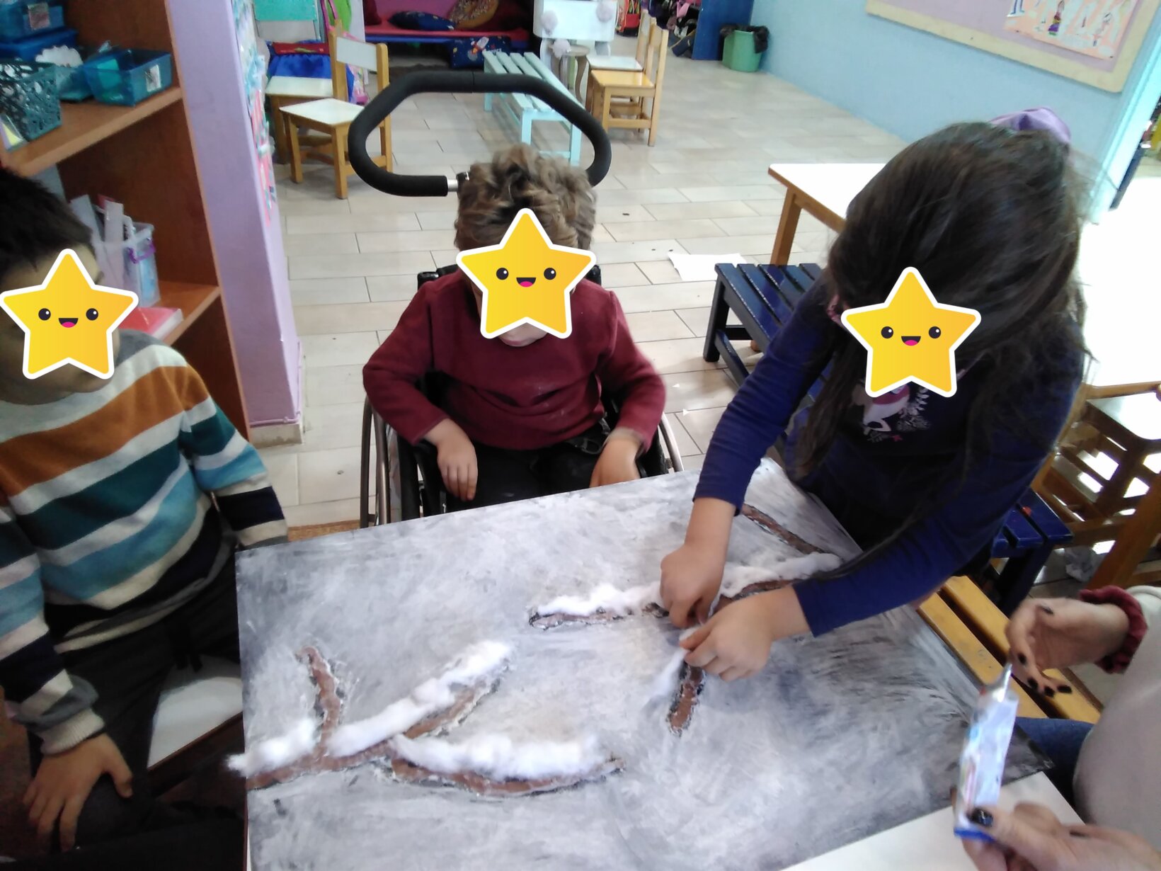 με πλαστελίνη για τα κλαδιά, κιμωλίες και βαμβάκι για το χιόνι , φτερά που κόλλησαν στα πουλάκια , βγήκε ένας υπέροχος ομαδοσυνεργατικός πίνακας που απόλαυσαν τα παιδιά. Συγχαρητήρια σε όλα μας τα παιδιά!