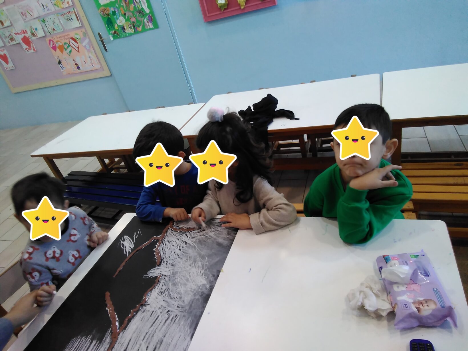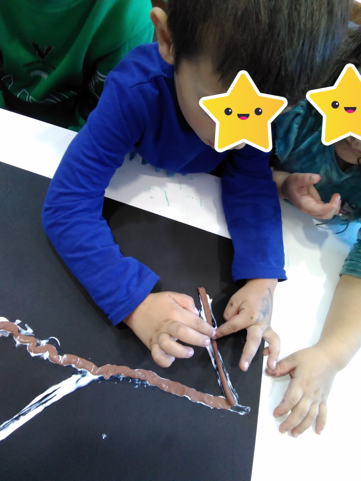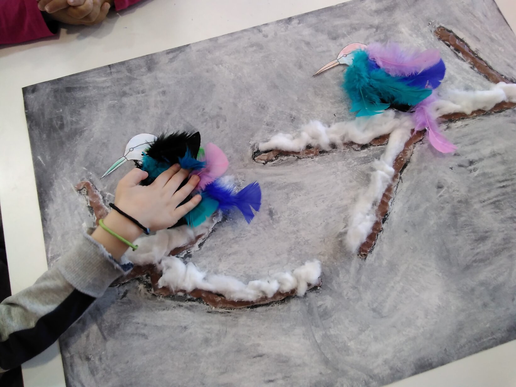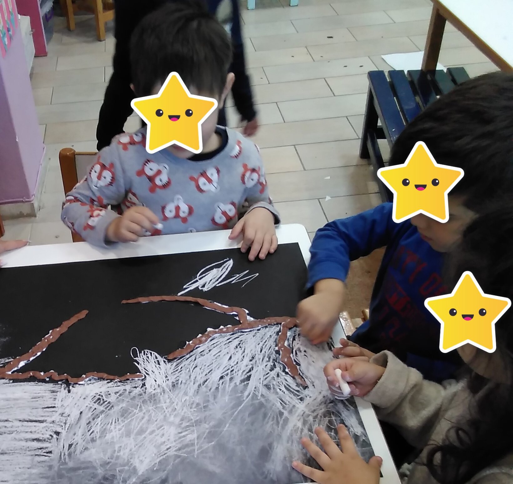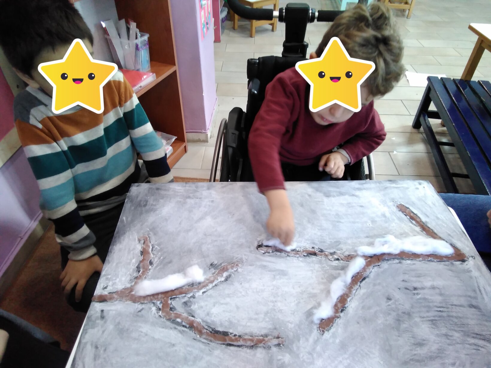με πλαστελίνη για τα κλαδιά, κιμωλίες και βαμβάκι για το χιόνι , φτερά που κόλλησαν στα πουλάκια , βγήκε ένας υπέροχος ομαδοσυνεργατικός πίνακας που απόλαυσαν τα παιδιά. Συγχαρητήρια σε όλα μας τα παιδιά!