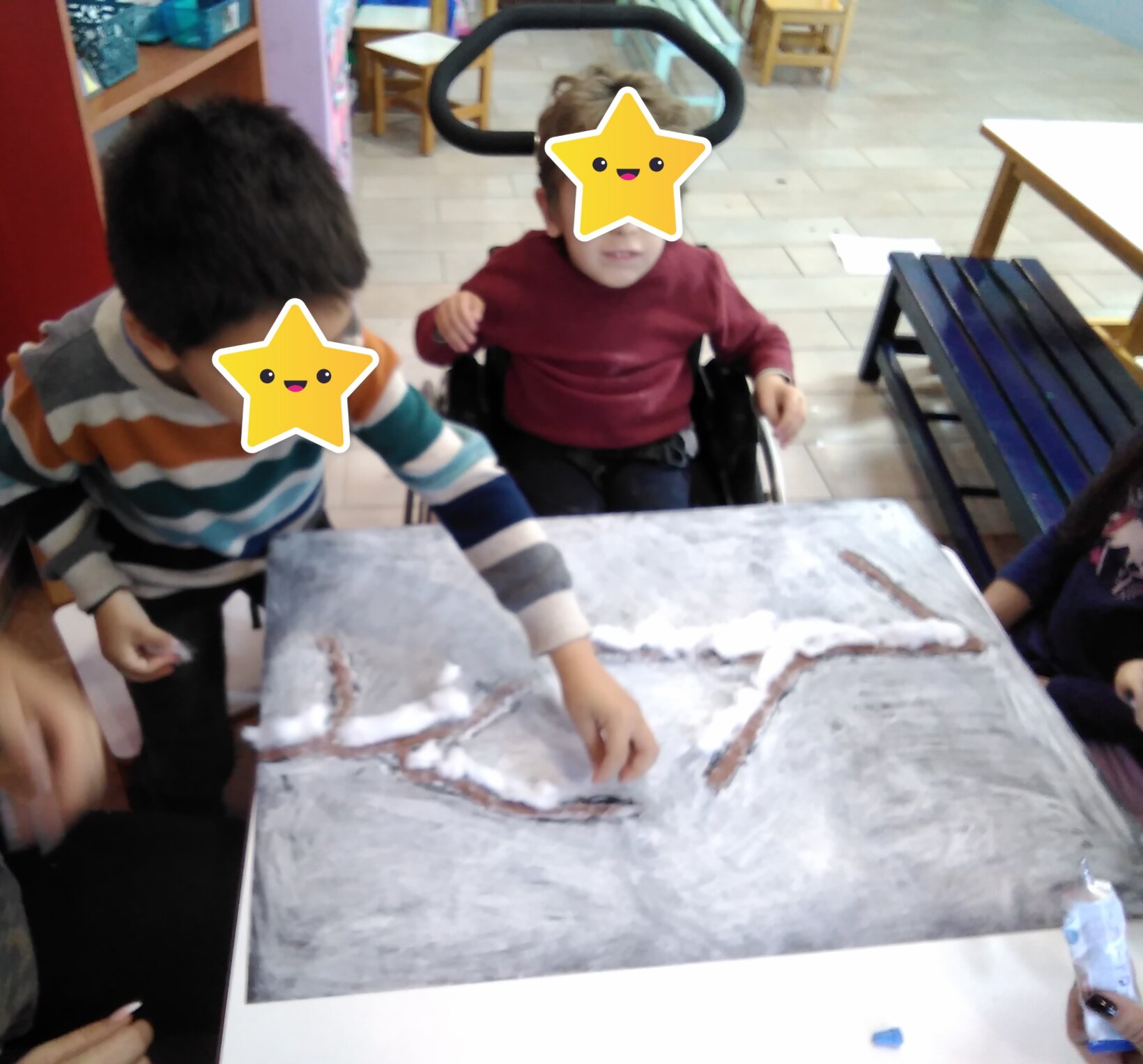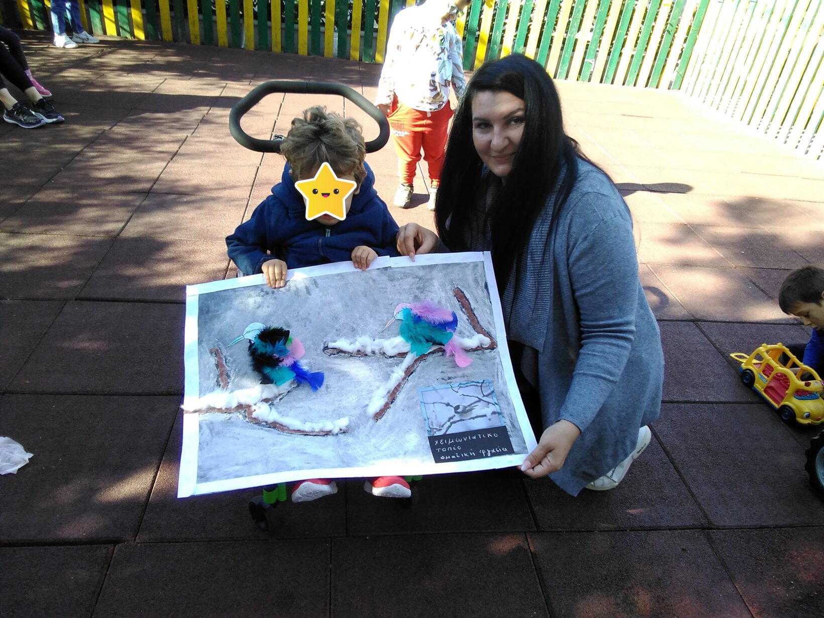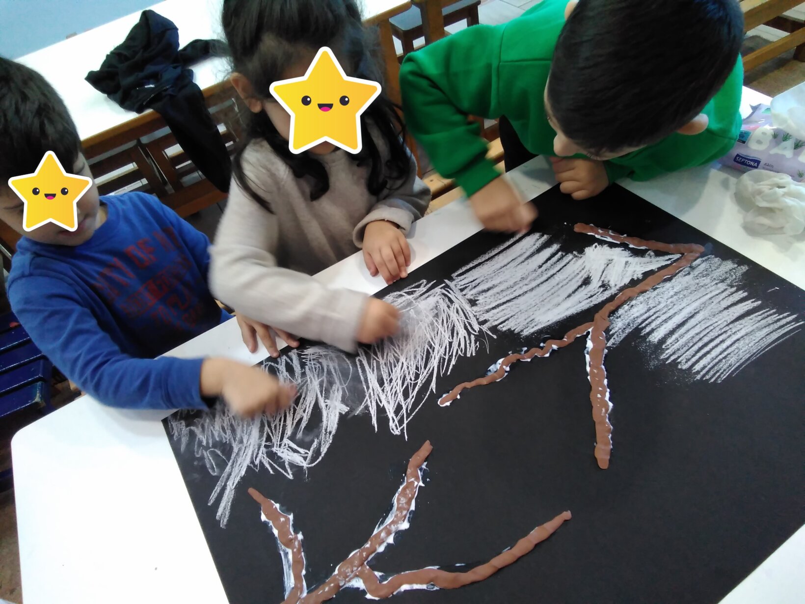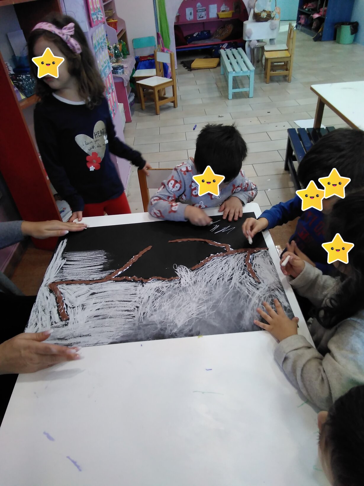 με πλαστελίνη για τα κλαδιά, κιμωλίες και βαμβάκι για το χιόνι , φτερά που κόλλησαν στα πουλάκια , βγήκε ένας υπέροχος ομαδοσυνεργατικός πίνακας που απόλαυσαν τα παιδιά. Συγχαρητήρια σε όλα μας τα παιδιά!
