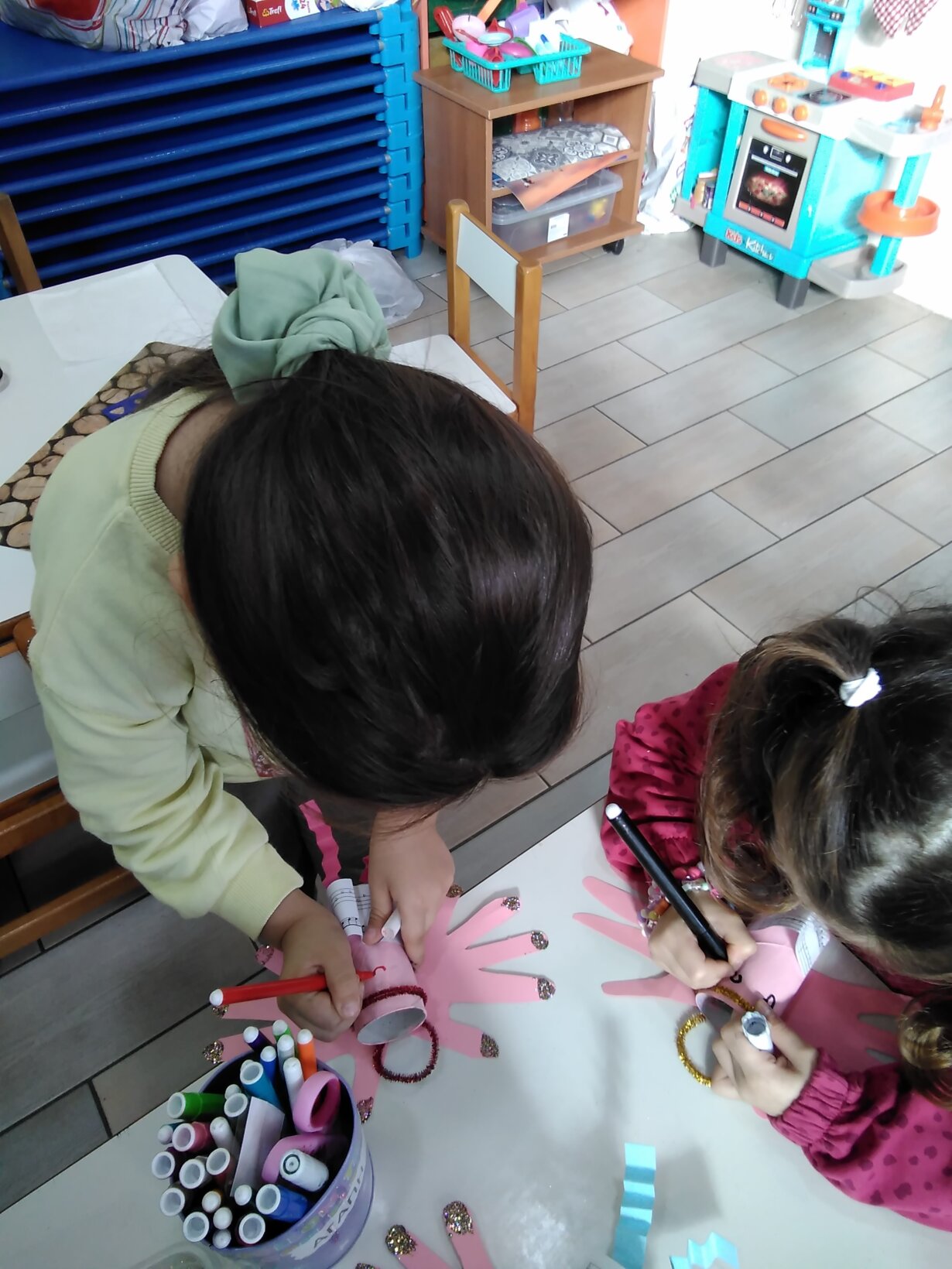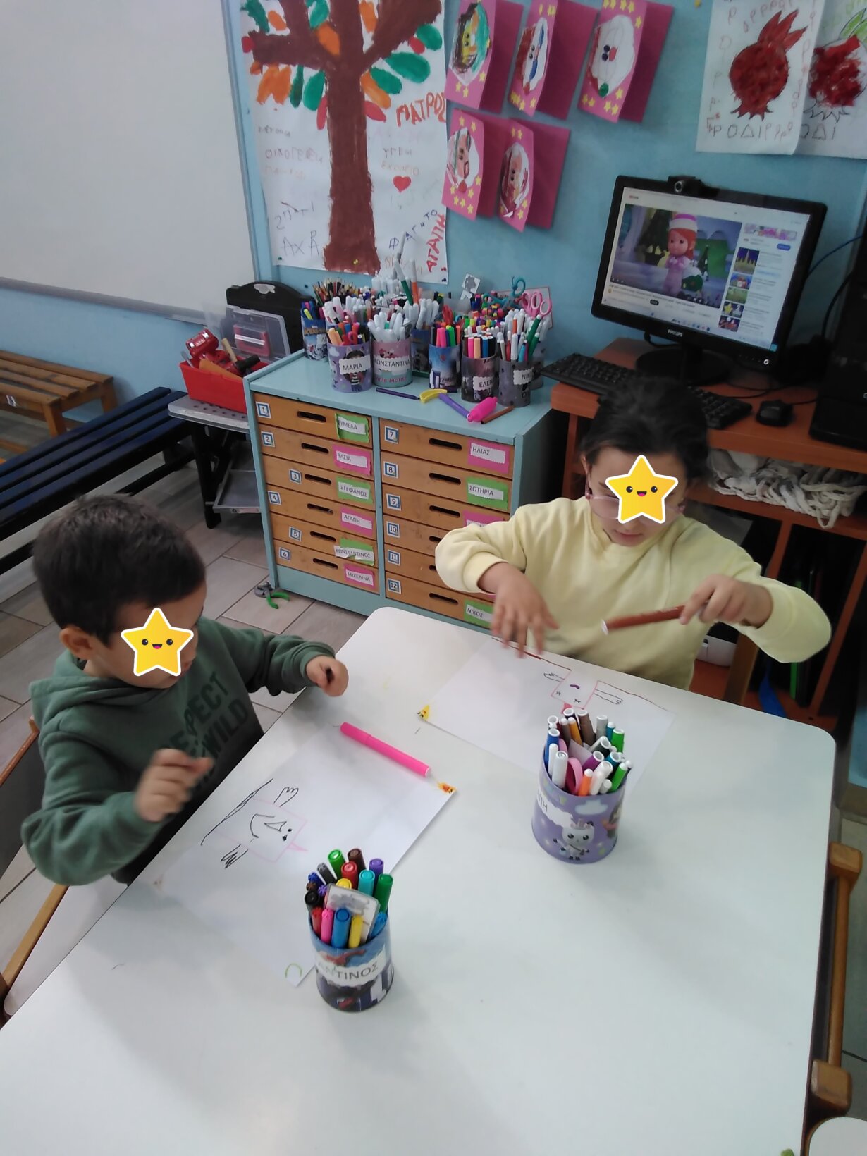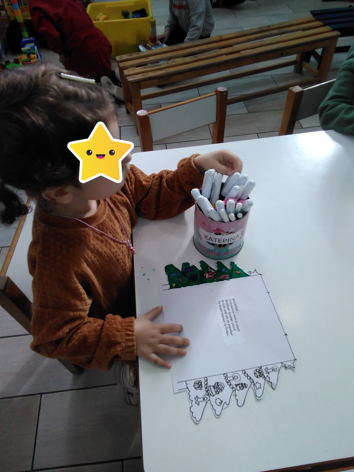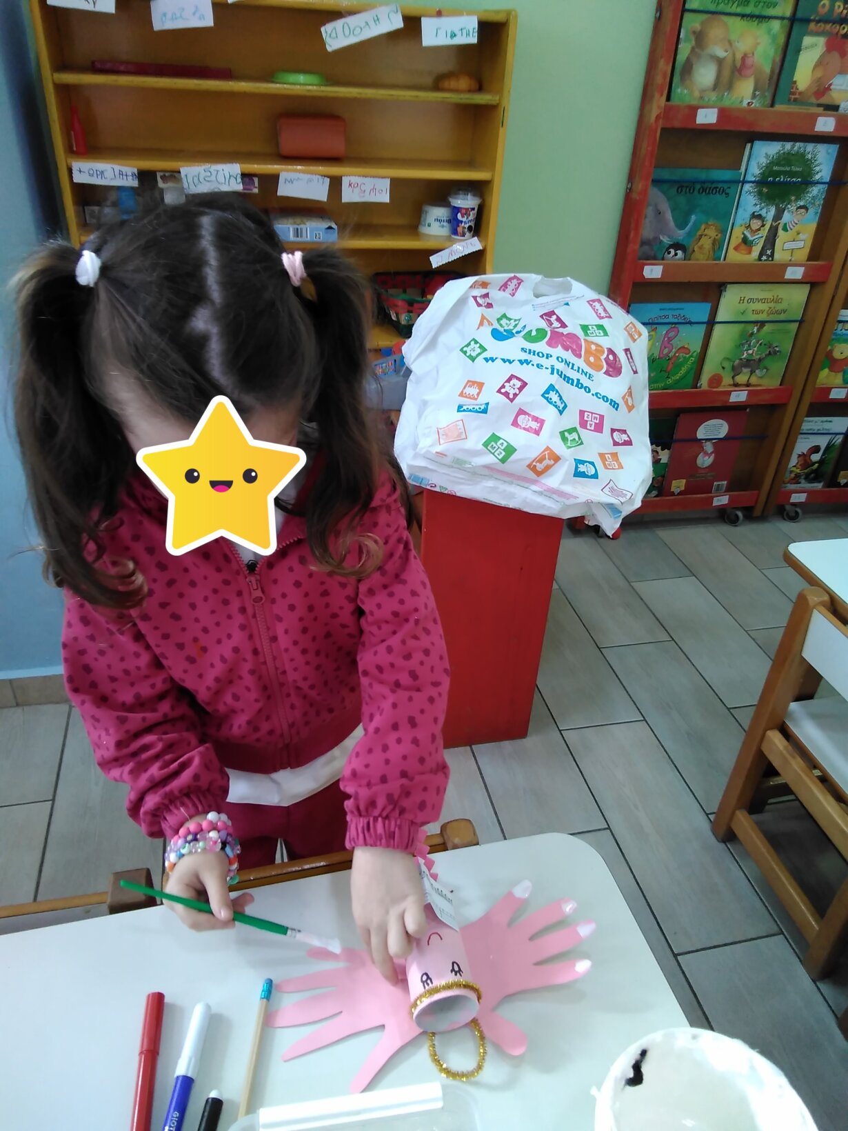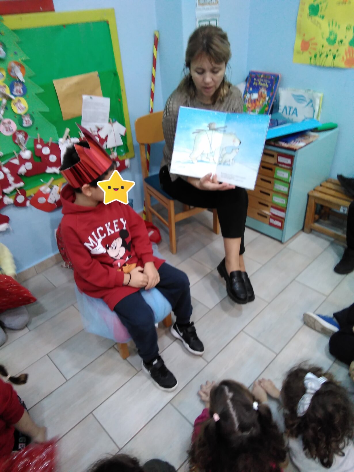 Έγινε αγορά ενός νέου Χριστουγεννιάτικου βιβλίου που θα εμπλουτίζει τη βιβλιοθήκη μας με τίτλο “τα χέρια δεν είναι να χτυπάνε τα χάρια αγαπάνε τα Χριστούγεννα “. Τα παιδιά ζωγράφισαν τις καλές πράξεις που μπορούν να κάνουν με τα δυο τους χεράκια.