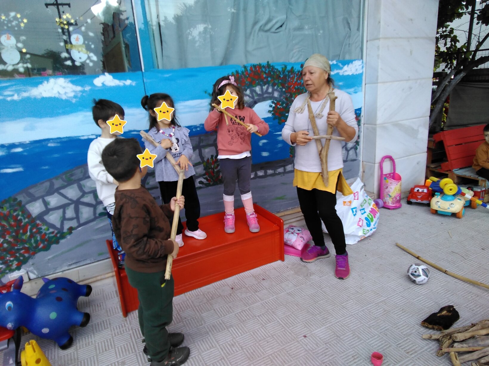Χριστουγεννιάτικη μπάντα με υλικά από την φύση, όπως ξύλα