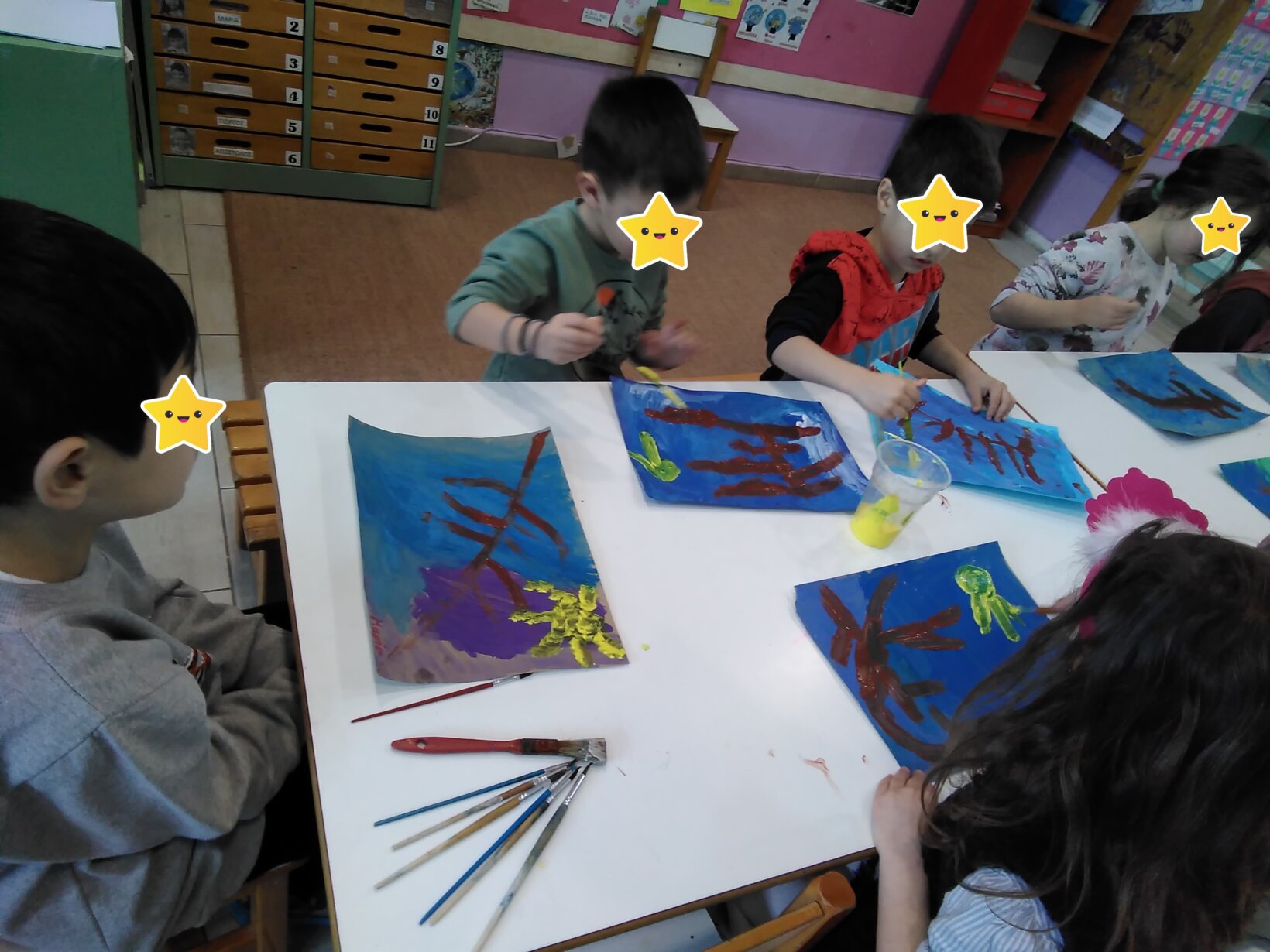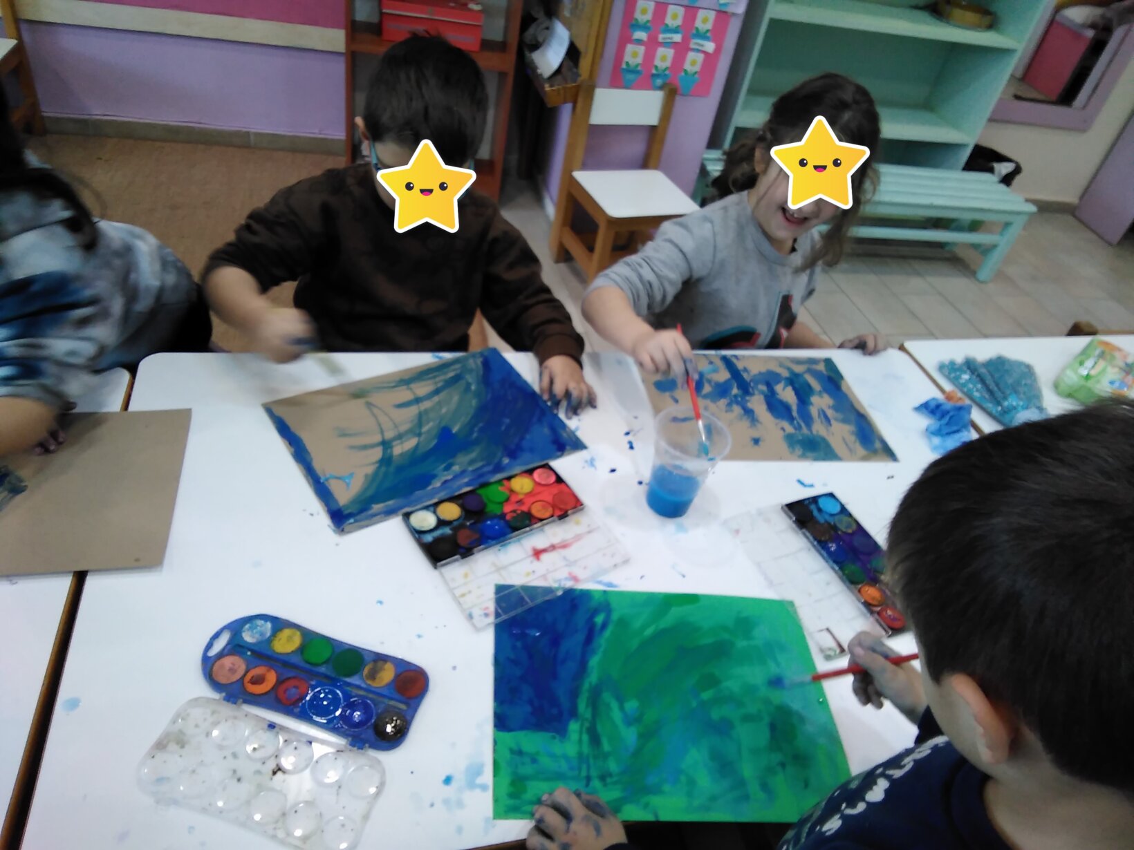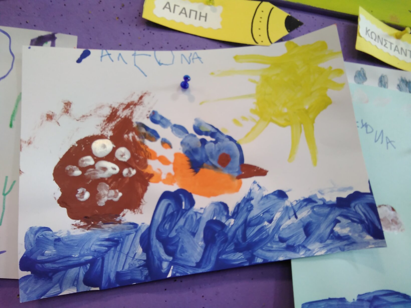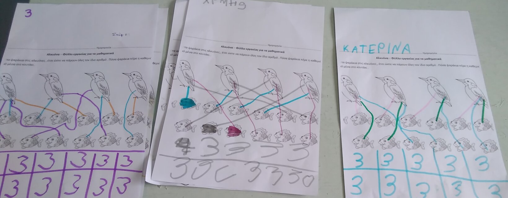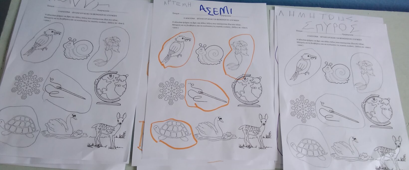 Τα παιδιά ζωγράφισαν τον μύθο, ζωγράφισαν την αλκυόνη πουλί σε έτοιμο φύλλο εργασίας έγραψαν όπως μπορούν την λέξη αλκυόνη, συμπλήρωσαν φύλλα εργασίας γλώσσας και μαθηματικών και δημιούργησαν πίνακα ζωγραφικής σχετικές με το θέμα.