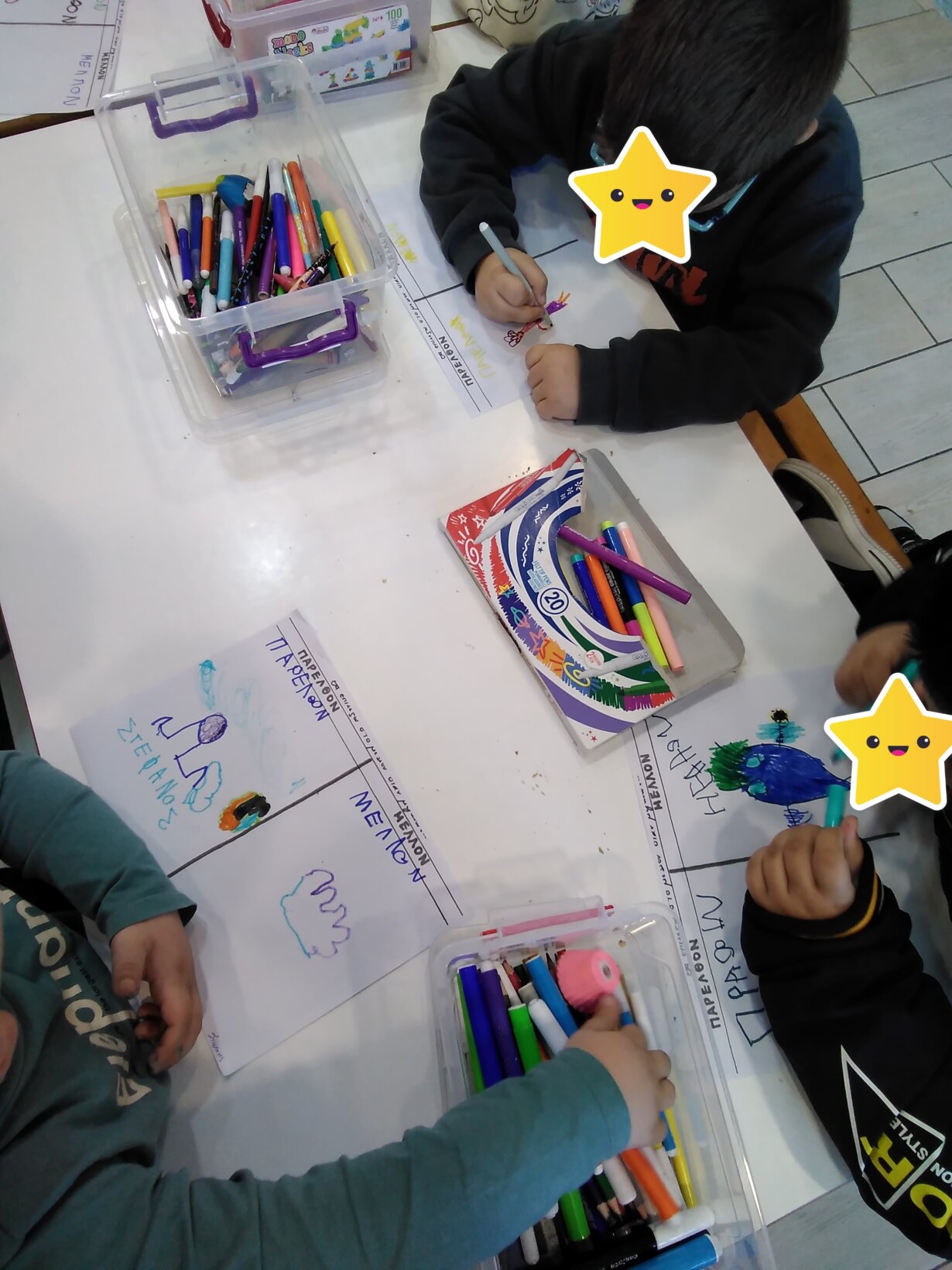 Τα παιδιά μεταφέρθηκαν μέσα από το θεατρικό παιχνίδι σε παλιότερες εποχές και έπαιξαν διάφορους ρόλους επαγγελμάτων . Επέλεξαν για τον εαυτό τους κάποιο παλιό επάγγελμα και το ζωγράφισαν . Ζωγράφισαν επίσης το επάγγελμα που θέλουν να κάνουν όταν μεγαλώσουν .