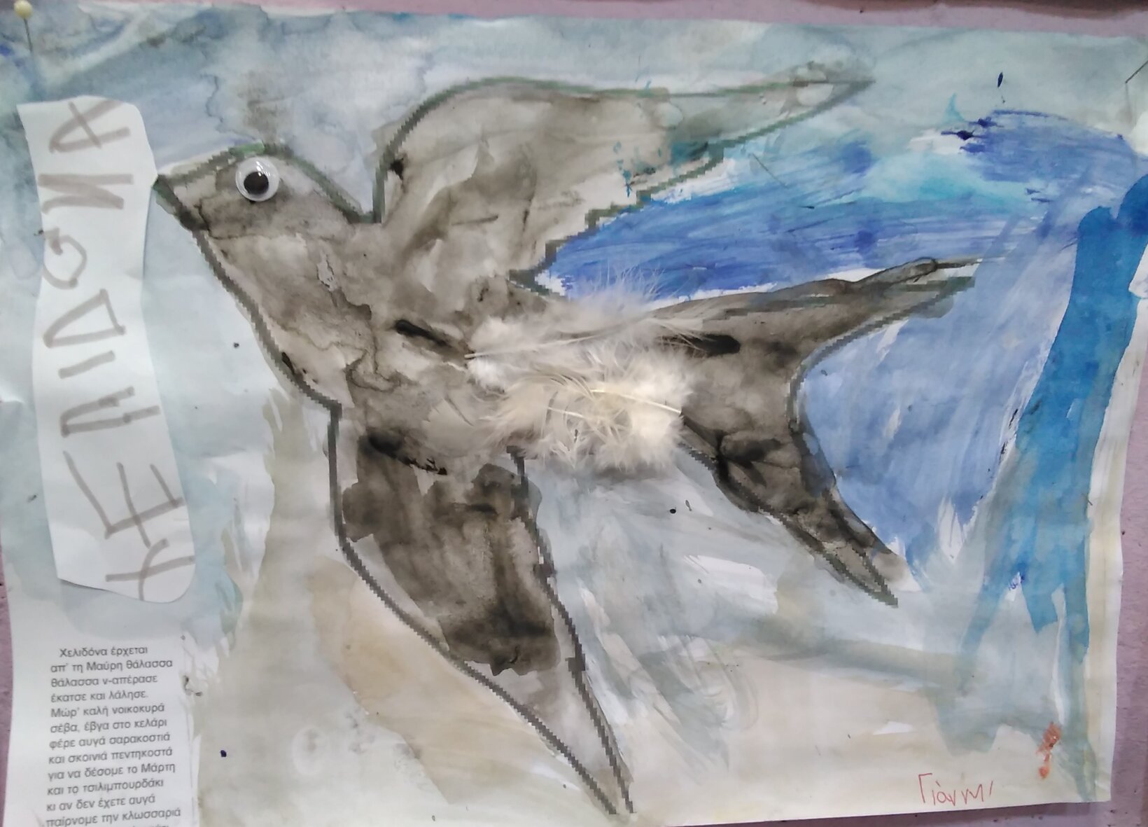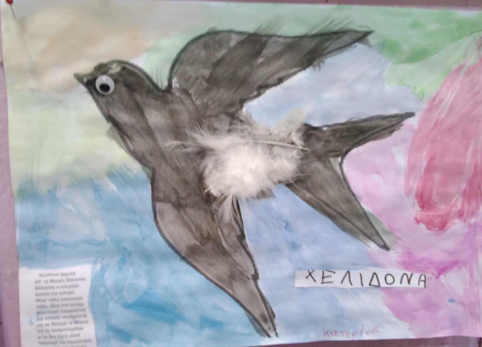 Με τα παιδιά γνωρίσαμε το έθιμο τα χελιδονίσματα , μάθαμε το τραγούδι, το γράψαμε όπως μπορούμε και ζωγραφίσαμε την χελιδόνα με νερομπογιές. Τέλος , φτιάξαμε χειροτεχνία χελιδόνια με χαρτόνια .