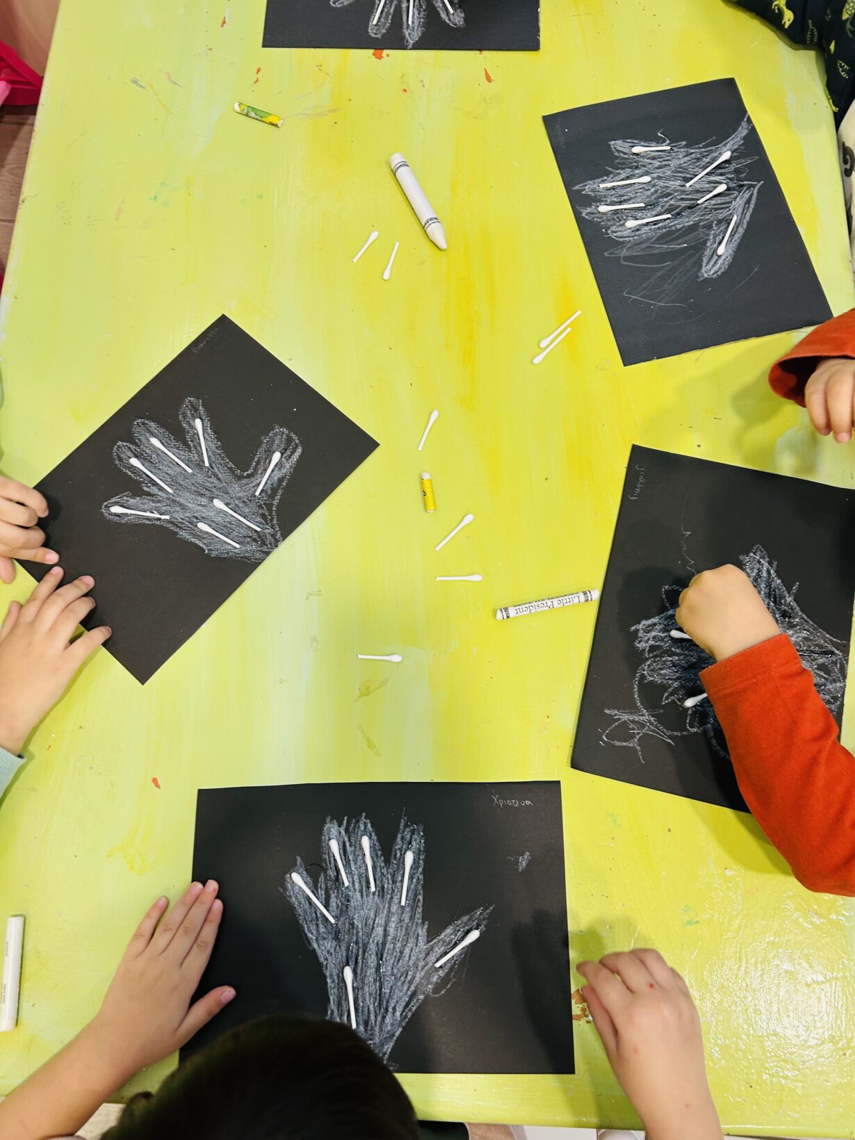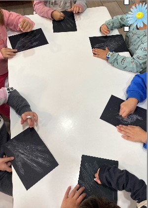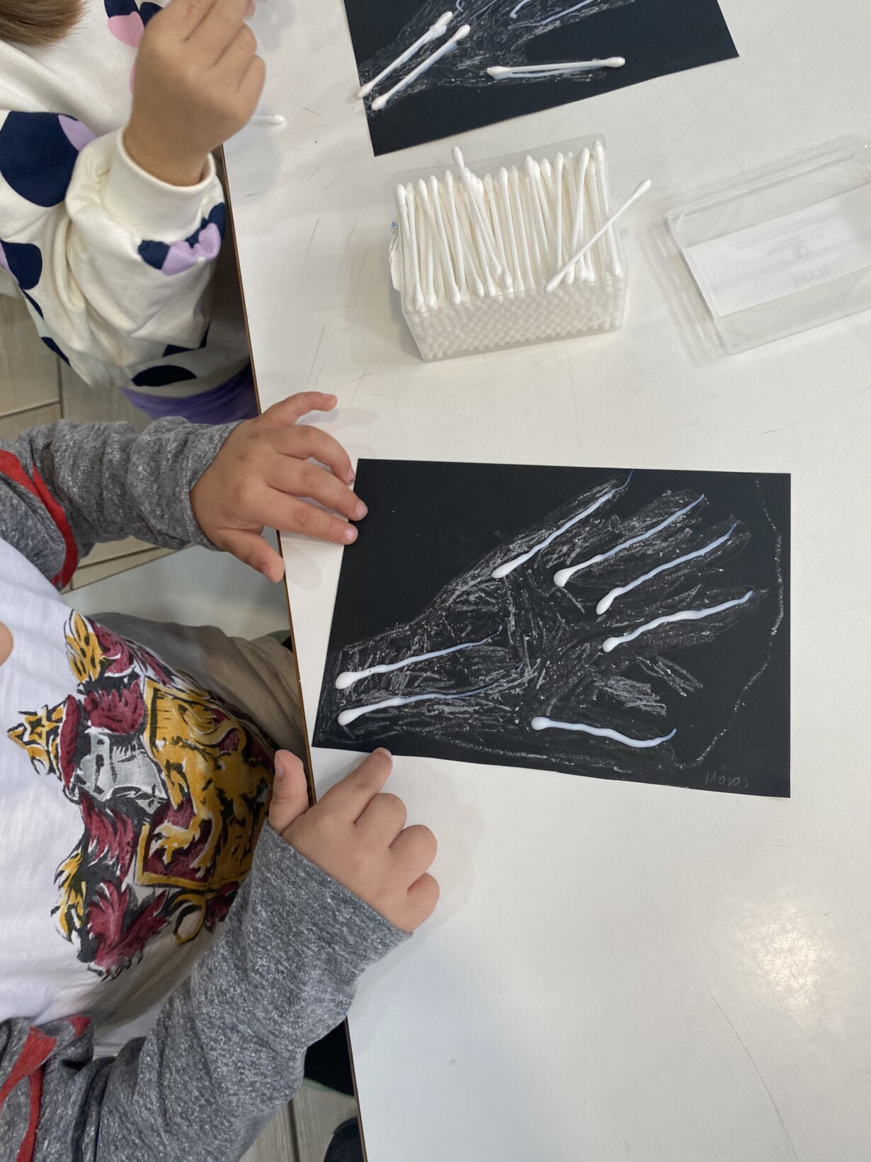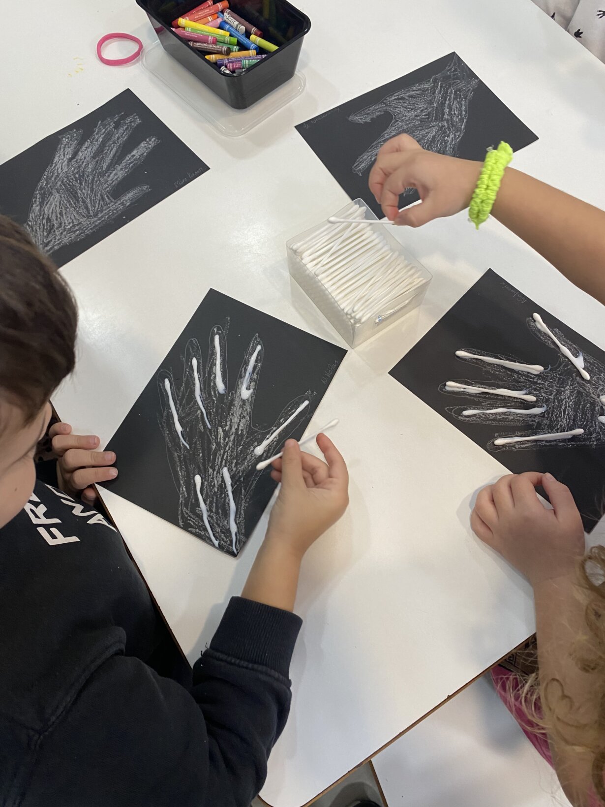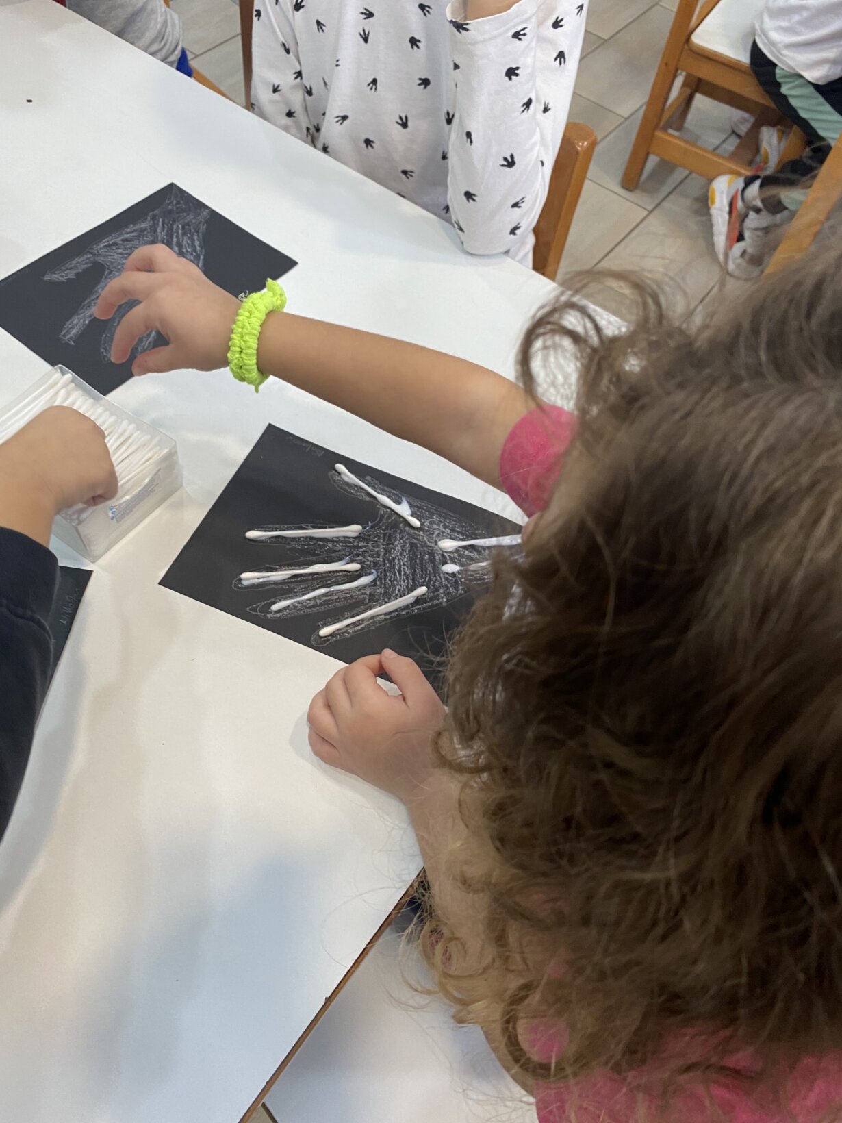 - Τα παιδιά τοποθετούν το χέρι τους πάνω στο μαύρο χαρτόνι και σχηματίζουν το περίγραμμα του χεριού τους.