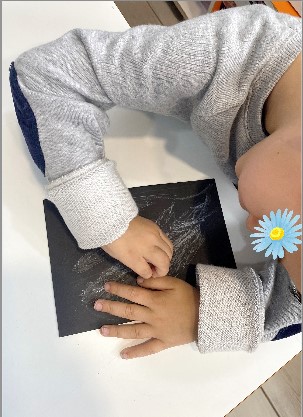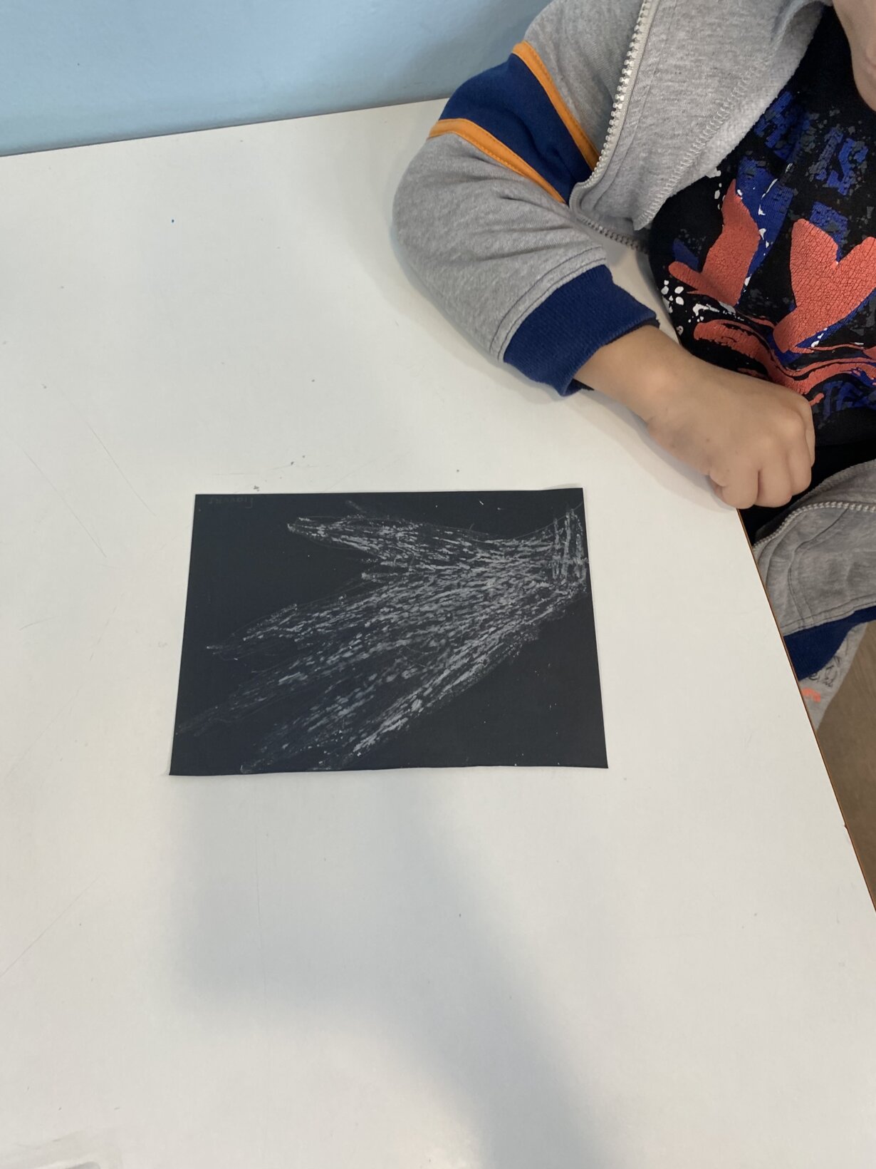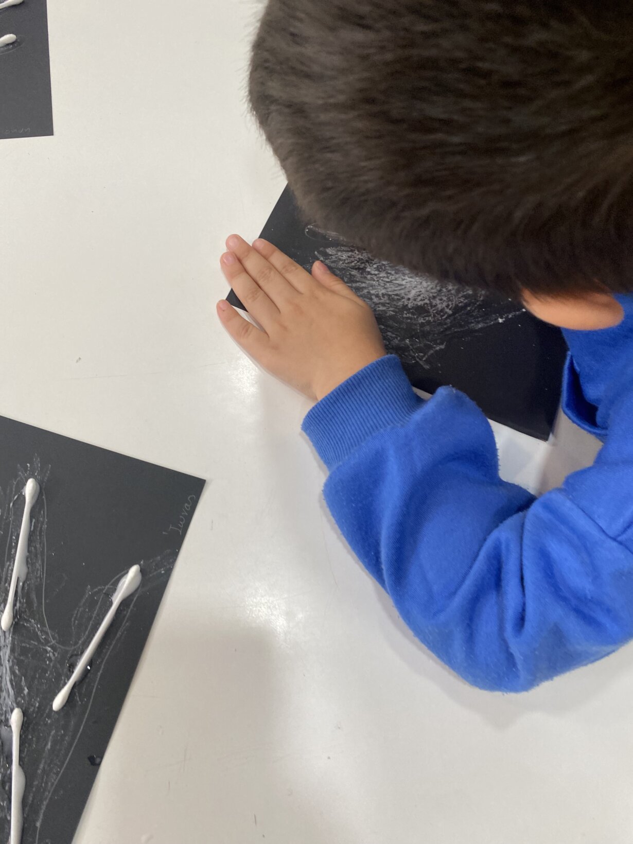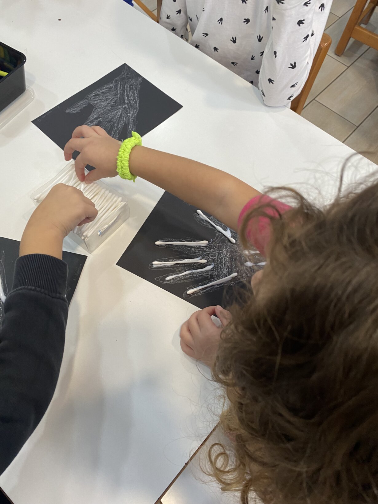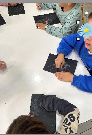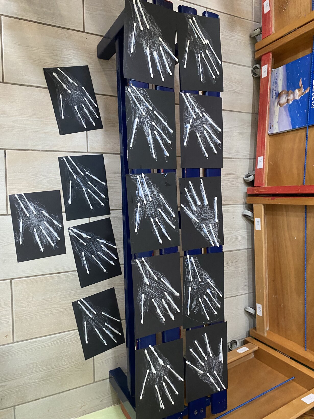 - Τα παιδιά τοποθετούν το χέρι τους πάνω στο μαύρο χαρτόνι και σχηματίζουν το περίγραμμα του χεριού τους.
