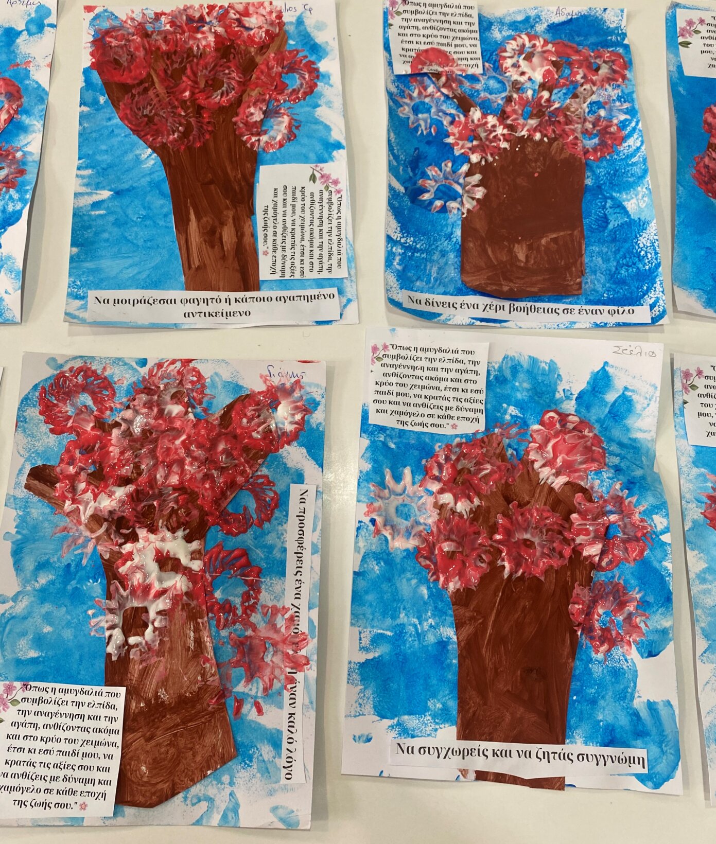 - Συμβολική Έκφραση: Τα παιδιά εκφράζουν δημιουργικά τις αξίες μέσα από το δέντρο τους.