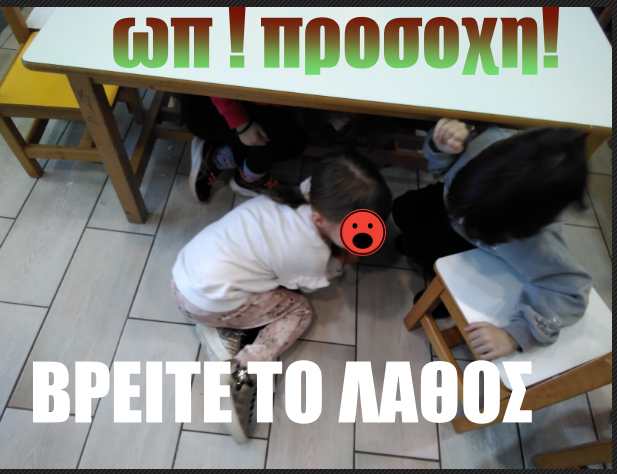 Στόχος: Τα παιδιά να εξοικειωθούν με τις βασικές ενέργειες προστασίας κατά τη διάρκεια σεισμού και την ασφαλή εκκένωση του κτιρίου.