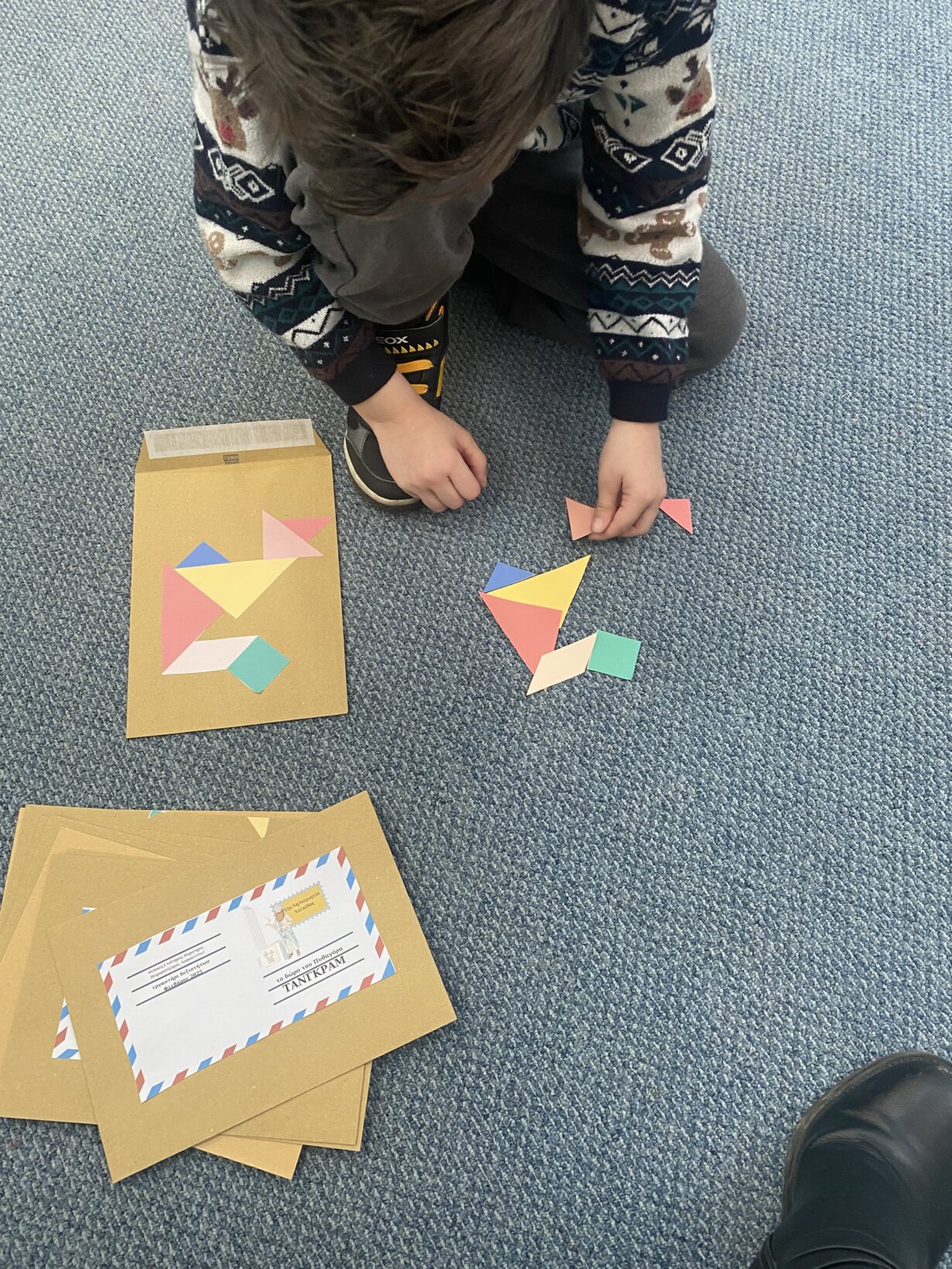 Μέσα σε έναν φάκελο κρύβεται μια πρόκληση: μπορούν να συνθέσουν σχήματα και εικόνες χρησιμοποιώντας τα γεωμετρικά κομμάτια;