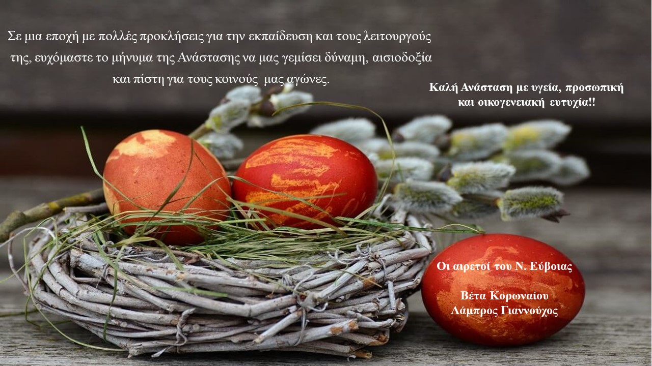 Ευχές από την Περιφερειακή Διεύθυνση Εκπαίδευσης Στερεάς Ελλάδας για τις γιορτινές ημέρες του Πάσχα.