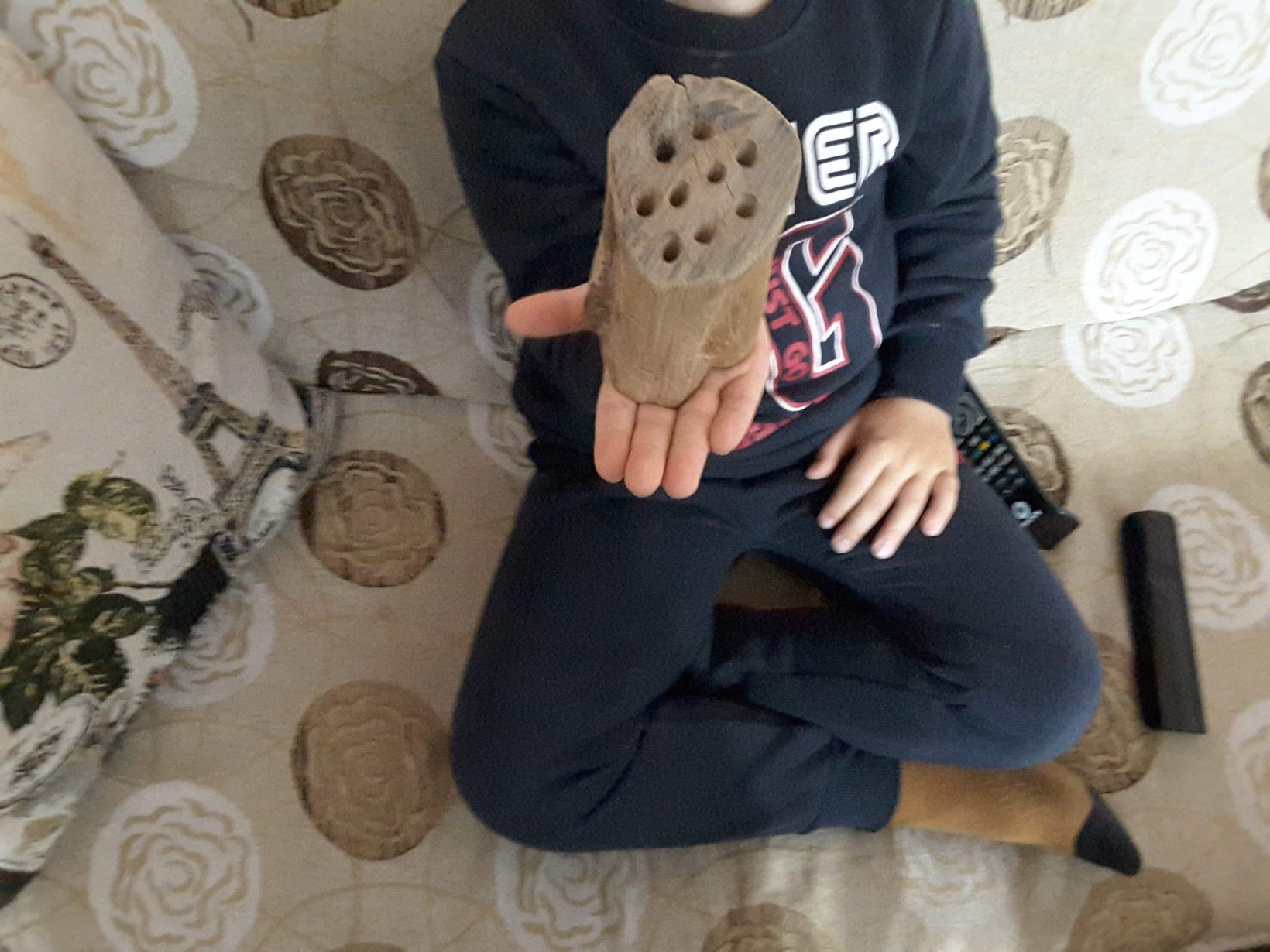με τη βοήθεια της γιαγιά του έκανε μια μολυβοθήκη από ξύλο ελιάς.