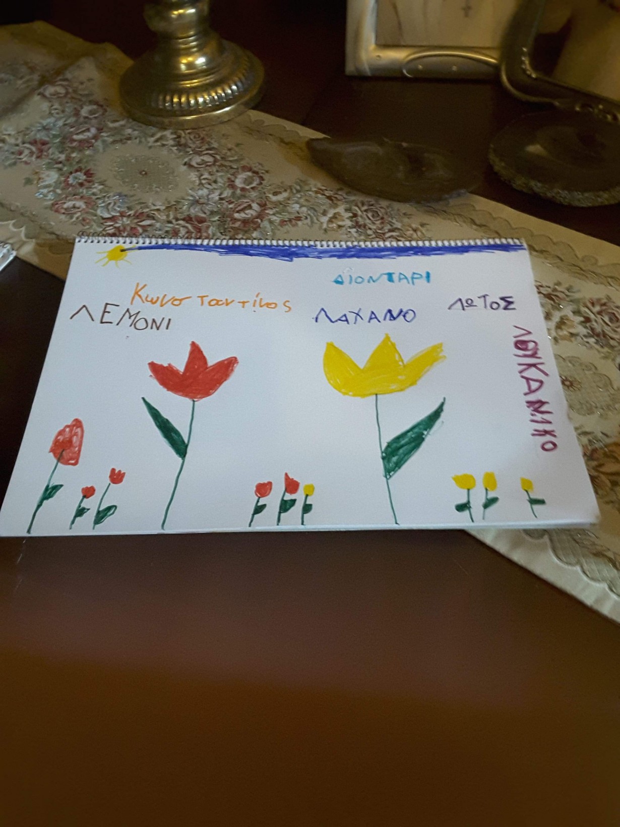 η Μυρτώ, μας έστειλε την πρώτη μας ζωγραφιά με τουλίπες για να μας φέρει την Άνοιξη.