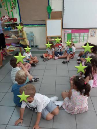 Επίσης παίξαμε το παιχνίδι “Μάντεψε ποιος είμαι”. Ο εκπαιδευτικός περιέγραφε τα ρούχα του παιδιού που διάλεγε και η υπόλοιπη ομάδα προσπαθούσε να το ανακαλύψει λέγοντας τ’όνομά του.