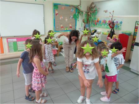 Κάθε παιδί έμπαινε στο κέντρο του κύκλου και λέγοντας τ’ όνομά του έκανε μια κίνηση που διάλεγε.Όλοι οι υπόλοιποι μιμούμαστε την κίνηση αυτή λέγοντας το ανάλογο όνομα.
