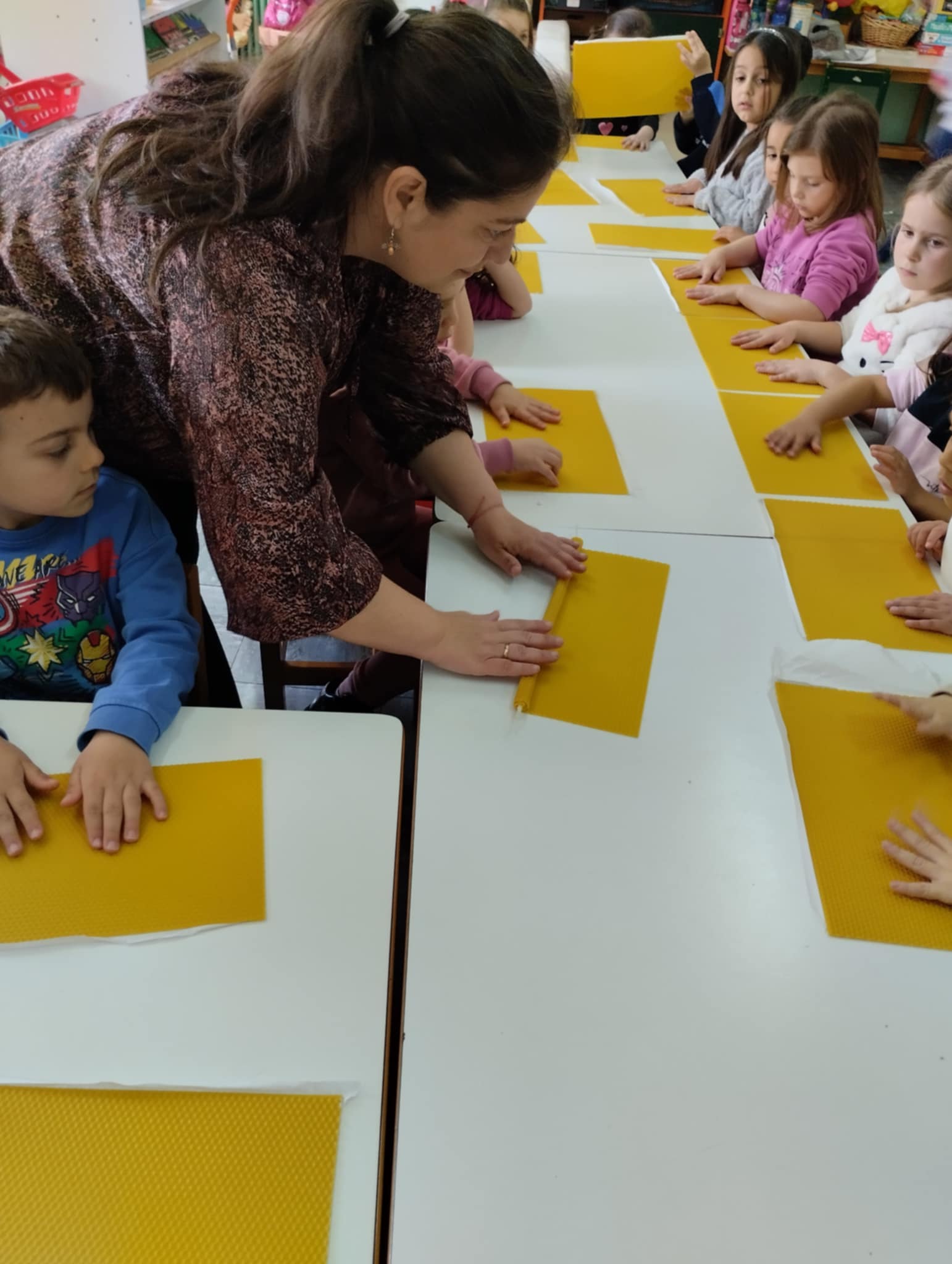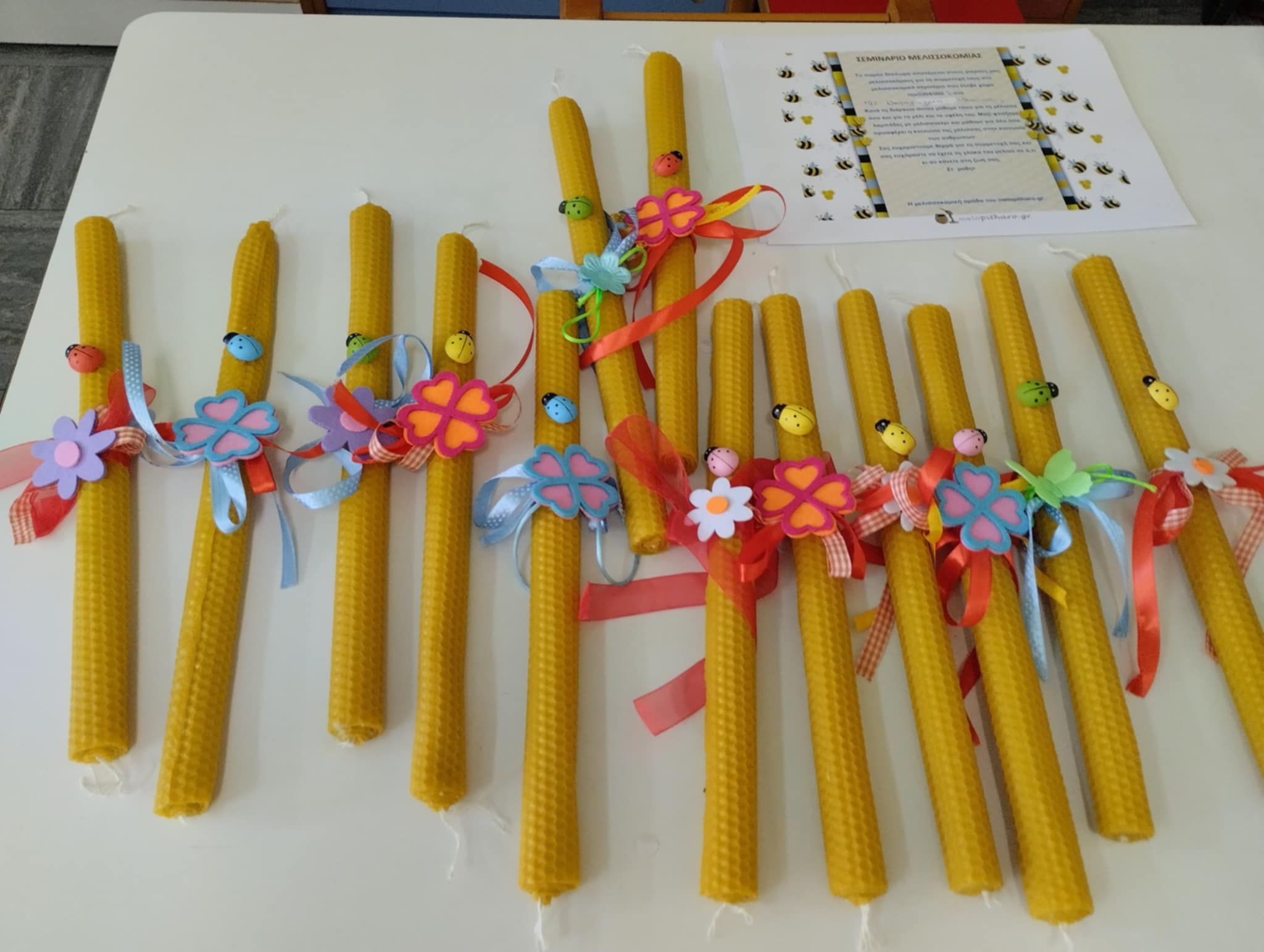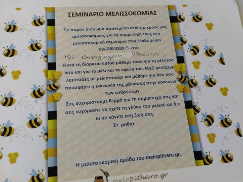 Σήμερα, παιδιά κι εκπαιδευτικοί παρακολουθήσαμε ένα πολύ σημαντικό κι ενδιαφέρον εκπαιδευτικό πρόγραμμα σχετικά με τη μέλισσα. Ευχαριστούμε την κ. Πετρόγκωνα, τη μελισσοκόμο, τόσο για την ολοκληρωμένη παρουσίαση , όσο και για τα δωράκια που μας πρόσφερε. Δοκιμάσαμε αγνό μέλι και φυσικά, φτιάξαμε λαμπάδες , εν όψει του Πάσχα, από φυσικό κερί μέλισσας.