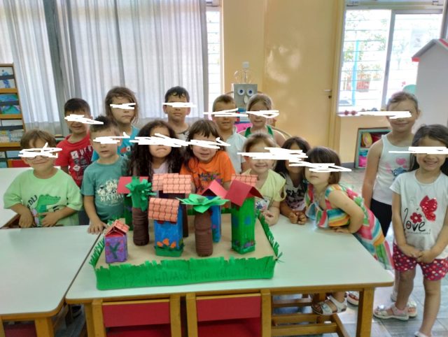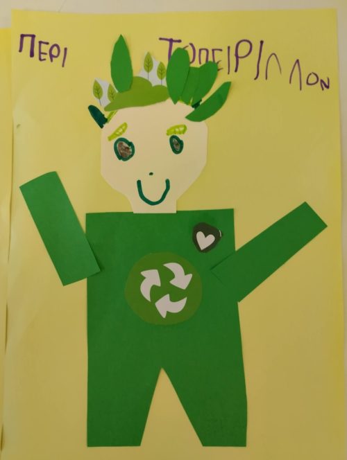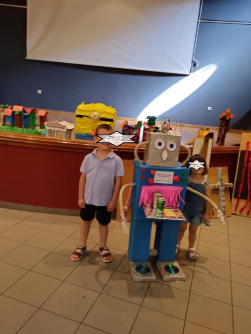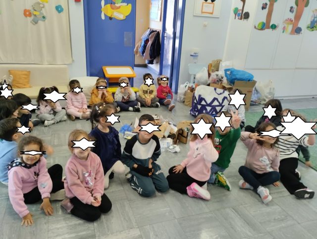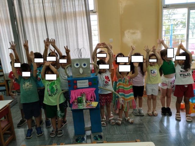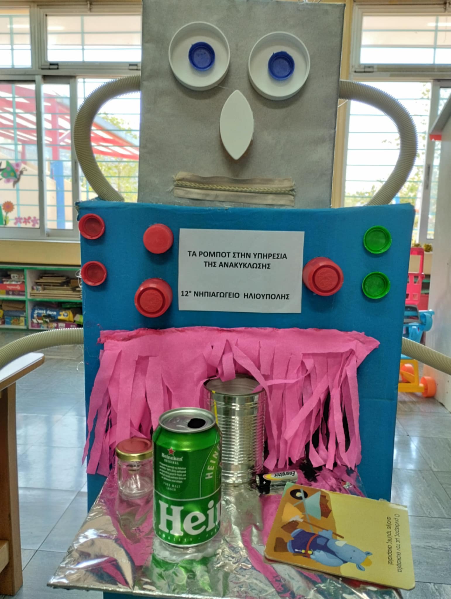 Συμμετοχή των μαθητών/τριών και των 2 τμημάτων του Νηπιαγωγείου σε κοινές δράσεις ενίσχυσης της ενεργού πολιτειότητας σε αντιστοίχιση με τα θεματικά πεδία του Προγράμματος Σπουδών :Στο πλαίσιο των Εργαστηρίων Δεξιοτήτων προσεγγίσαμε την έννοια της Ανακύκλωσης μέσα από τη θεματική ενότητα:΄΄Τα ρομπότ στην υπηρεσία της Ανακύκλωσης ΄΄.Συλλέξαμε, ταξινομήσαμε ανακυκλώσιμα υλικά, παίξαμε παιχνίδια με το ρομποτάκι beebot, είδαμε σχετικά video, διαβάσαμε σχετικά παραμύθια, καθαρίσαμε από τα απορρίμματα πέριξ του σχολείου, και φυσικά δεχτήκαμε τον κ. Κόντη στο σχολείο με συνεργάτες από την Περιφέρεια (με το πρόγραμμα GREENCITY) ο οποίος μας ενημέρωσε για τους τρόπους διαλογής απορριμμάτων, τη διαδικασία συλλογής και διαχωρισμού τους (τα παιδιά είδαν τη διαδικασία διαλογής, επι τόπου, από το όχημα) , και κυρίως για τη μεγάλη σημασία που έχει για το περιβάλλον η διαδικασία αυτή. Μας μίλησε για τις επιπτώσεις που έχει τόσο στους ανθρώπους όσο και στα ζώα η αλόγιστη χρήση του πλαστικού, και η υπερκατανάλωση .Συμφωνήσαμε όλοι ότι είναι πολύ σημαντικό να ανακυκλώνουμε και να πετάμε τα απορρίμματα στους σωστούς κάδους. Ασχοληθήκαμε καθ΄ όλη τη διάρκεια της χρονιάς με την συλλογή και αξιοποίηση ανακυκλώσιμων υλικών (μπαταρίες, πλαστικά μπουκάλια ,ρολά από χαρτί, αλουμίνιο)και σχεδόν όλες μας οι κατασκευές ήταν από αυτά τα ανακυκλώσιμα υλικά. Ενδεικτικά, παρουσιάζουμε ένα ρομπότ, τον Παρθενώνα, 2 μακέτες από συσκευασίες γάλακτος, ένα παιχνίδι πινιάτα -minion από χαρτόκουτο, τα οποία παρουσιάσαμε στην έκθεση που διοργάνωσε ο Δήμος Ηλιούπολης ,το Σάββατο 7 Ιουνίου στην αίθουσα εκδηλώσεων του Μουσείου Εθνικής Αντίστασης, τιμώντας την Παγκόσμια Ημέρα Περιβάλλοντος στις 5 Ιουνίου 2025, με τις δημιουργίες των σχολείων από ανακυκλώσιμα υλικά . Στοχεύσαμε στην περιβαλλοντική ευαισθητοποίηση και ανάπτυξη της οικολογικής συνείδησης των παιδιών. Ευχαριστούμε, όλους τους γονείς που υποστήριξαν αυτή την προσπάθεια με τη συλλογή των ανακυκλώσιμων υλικών και ιδιαίτερα τον κ. Αλεξανδρή , γονέα μαθητών μας , για την παρουσίαση των έργων μας στην έκθεση.