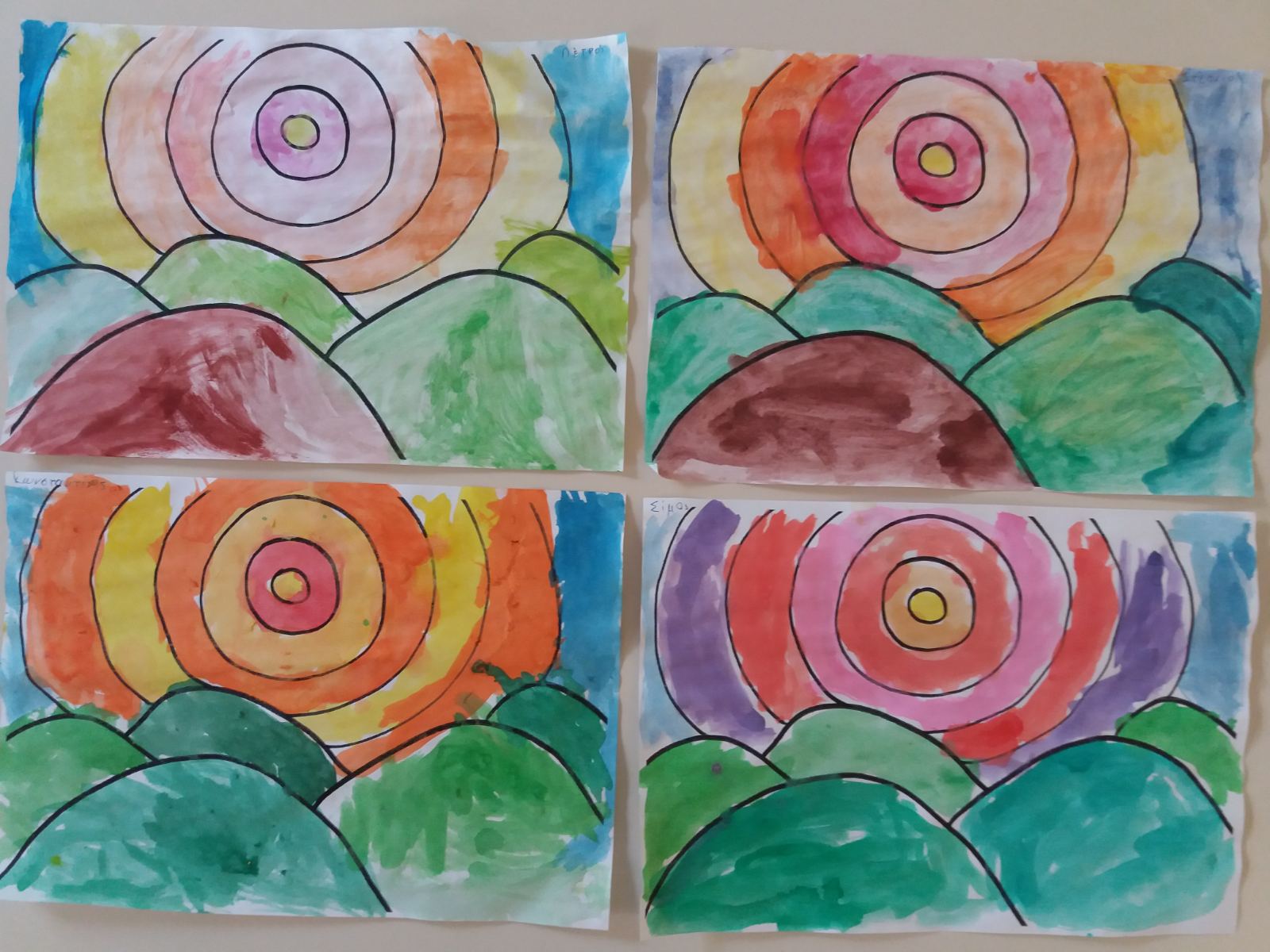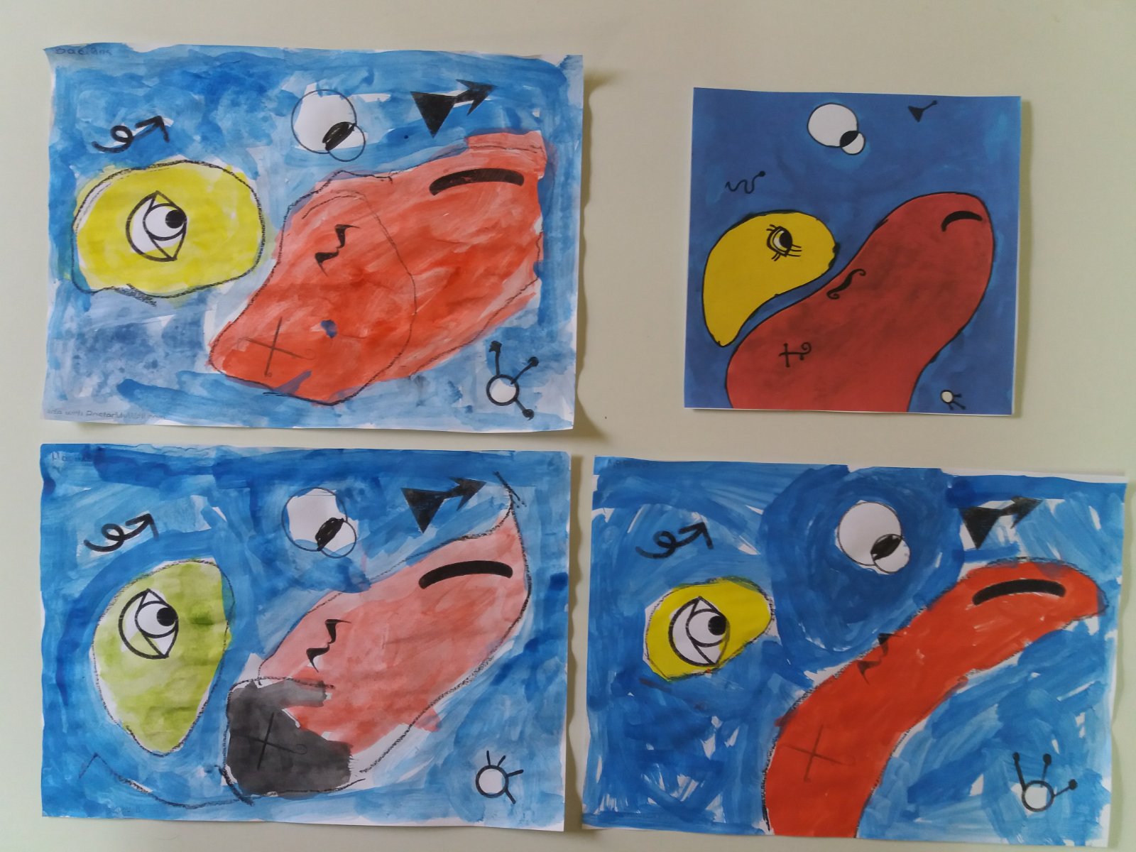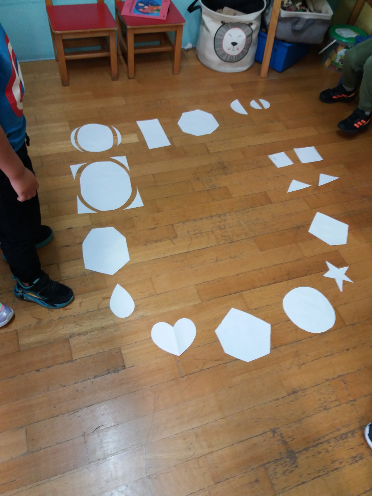 Αφού διαβάσαμε το βιβλίο “Η οικογένεια του κύριου Τριγώνου” της Σοφίας Ζαραμπούκα, αναδιηγηθήκαμε την ιστορία με τη βοήθεια των σχημάτων που κόψαμε. Στη συνέχεια, συμπληρώσαμε στον πίνακα διπλής εισόδου ποιο είναι το αγαπημένο μας σχήμα. Αφού μάθαμε ότι κάθε σχήμα είναι μια γραμμή που ταξιδεύει ξεκινώντας από ένα σημείο κάθε φορά, ζωγραφίσαμε τους δικούς μας πίνακες εμπνευσμένους από διάσημους ζωγράφους όπως ο Χ. Μιρό.