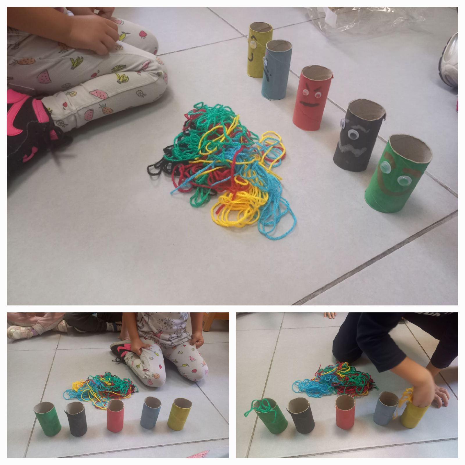 Έφτασε και η ώρα για το μάθημα αγγλικών! Αφού διαβάσαμε την ιστορία “Τhe colour monster”, παίξαμε παντομίμα με τα συναισθήματα της χαράς, της λύπης, του θυμού, του φόβου και της ηρεμίας. Κάθε συναίσθημα αντιπροσωπεύτηκε και από ένα συγκεκριμένο χρώμα (χαρά- κίτρινο, λύπη- μπλε, θυμός- κόκκινο, φόβος- μαύρο, ηρεμία- πράσινο). Στη συνέχεια, μιλήσαμε για το πώς αισθανόμαστε και γιατί και αφού ταξινομήσαμε τα “μπερδεμένα συναισθήματα” στο σωστό μέρος, σχηματίσαμε το συναίσθημά μας μέσα σε ένα μπολ με ζάχαρη βάζοντας τα αντίστοιχα μάτια και στόμα στο τερατάκι μας!