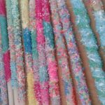 Σε μπολ με νερό βυθίζεις αρκετό γκοφρέ χαρτί στα χρώματα που επιθυμείς και το αφήνεις για μία ημέρα. Την άλλη μέρα ρίχνεις μέσα το ρύζι και το αφήνεις για λίγες ώρες. Κατόπιν το τοποθετείς σε απορροφητικό χαρτί , για να στραγγίξει τα νερά του…και το ψήνει η μαμά για λίγα λεπτά, για να στεγνώσει καλά. Περνάς ατλακόλ στη λαμπάδα, εκεί που θέλεις να κολλήσει το ρύζι. Μετά παίρνεις με τη χούφτα σου ρύζι και το ρίχνεις να κολλήσει στη λαμπάδα σου. Αν θέλεις προσθέτεις ασημόσκονη ή χρυσόσκονη. Την αφήνεις να στεγνώσει και περνάς μια στρώση ατλακόλ και πάλι, για να σταθεροποιηθεί το ρύζι.