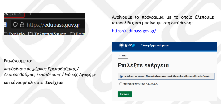 Βήμα 2ο : Πρόσβαση σε χώρους Πρωτοβάθμιας /Δευτεροβάθμιας Εκπαίδευσης