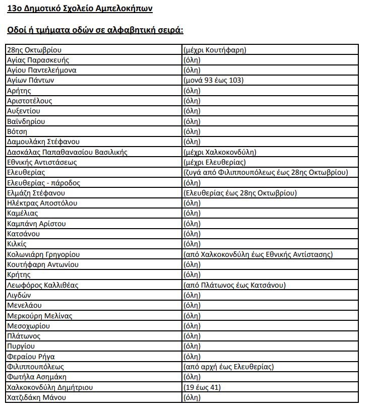 Και αύριο Παρασκευή (11-01-2019) το 13ο Δημοτικό Σχολείο Αμπελοκήπων θα παραμείνει κλειστό.
