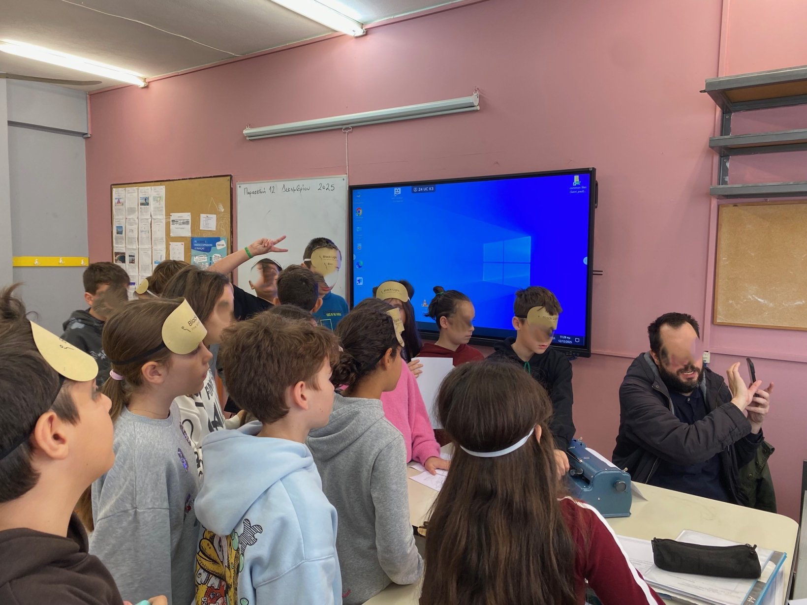 Μέσα από συζήτηση και βιωματικές δραστηριότητες, γνωρίσαμε καλύτερα τι είναι η οπτική αναπηρία και πώς είναι η καθημερινότητα ενός τυφλού ατόμου.