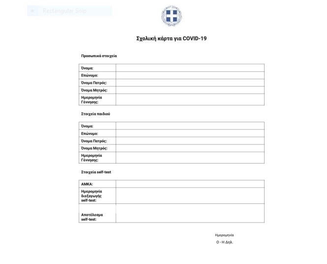 Τη Δευτέρα τα παιδιά για να εισέλθουν στο σχολείο θα πρέπει να επιδείξουν τη Σχολική κάρτα με το αρνητικό SELF TEST