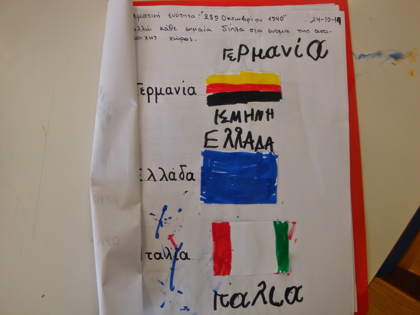 Γνωρίσαμε τις σημαίες άλλων χωρών, τις ζωγραφίσαμε και τις κολλήσαμε δίπλα στην αντίστοιχη λέξη.