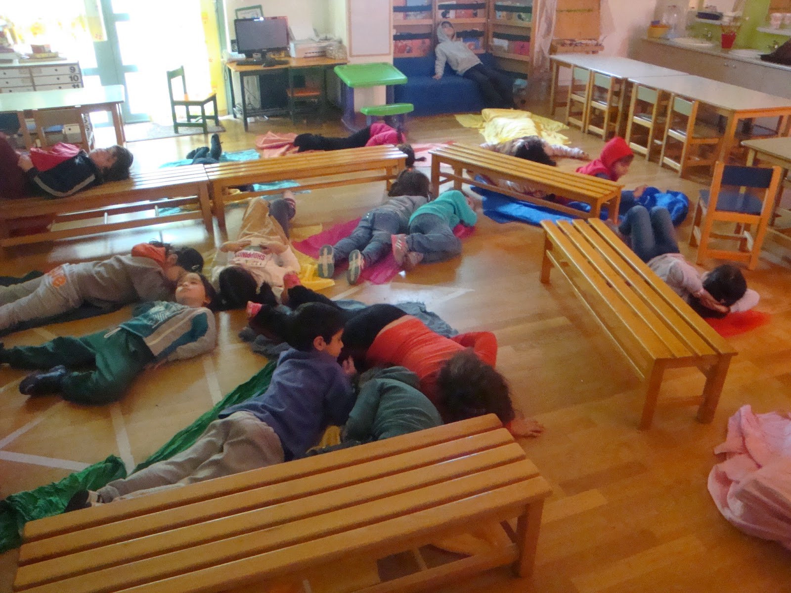 Έπειτα προχωρούμε σε μια πρώτη γνωριμία της εναλλαγής μέρας νύχτας μιλώντας για την περιστροφή της γης γύρω από τον εαυτό της και γύρω από τον ήλιο. Δραματοποιούμε τα γεγονότα που λαμβάνουν χώρα τη μέρα και τη νύχτα…