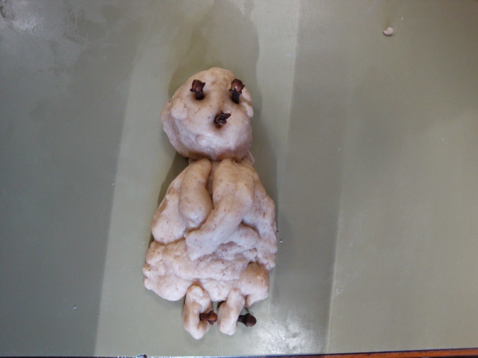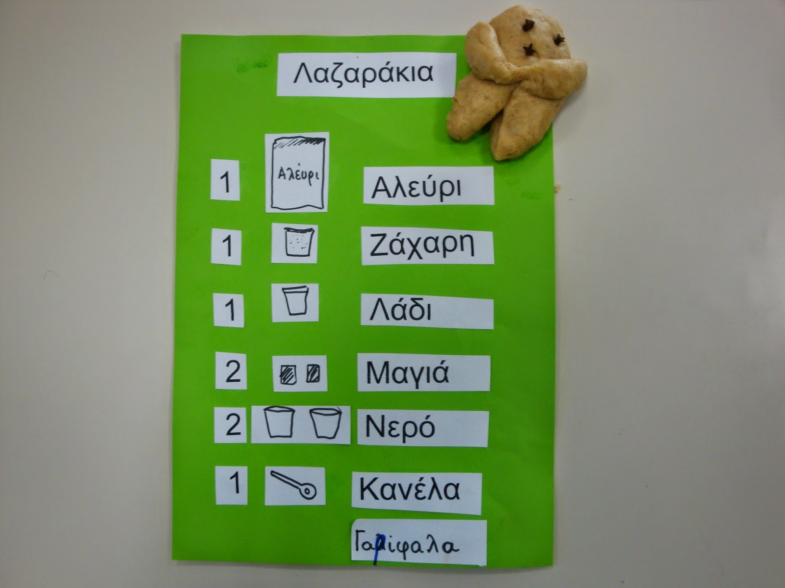 Στη συνέχεια διαβάσαμε τη συνταγή και στρωθήκαμε στη δουλειά. Ανακατέψαμε τα υλικά και φτιάξαμε όπως μπορούσαμε μικρά Λαζαράκια.
