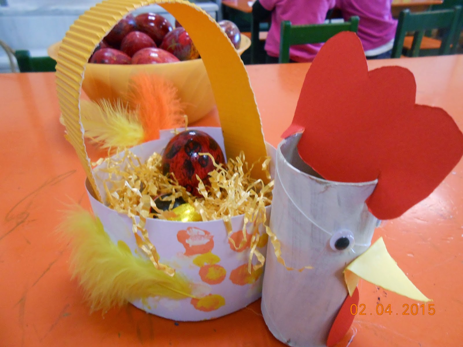 Σειρά είχε το πασχαλινό καλαθάκι που κατασκευάσαμε με ρολό, κεσεδάκι από γιαούρτι, και χαρτόνια κάνσον.