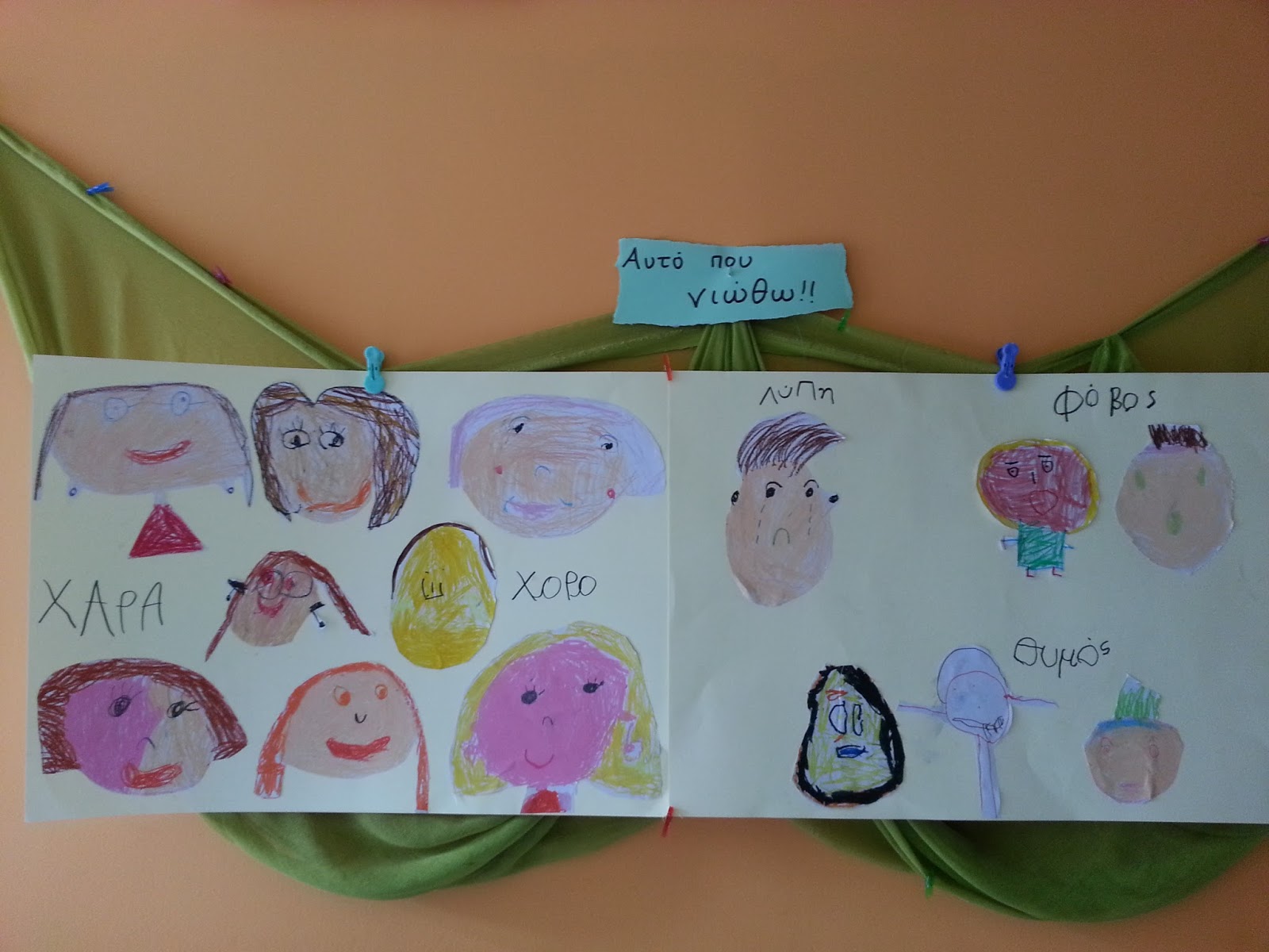 Διαβάζουμε το παραμύθι “αυτό που νιώθω”, και χωριζόμαστε σε ομάδες ανάλογα με το συναίσθημα που επιλέγουμε. Κάθε ομάδα δημιουργεί πορτρέτα-συναισθήματα και γράφει την αντίστοιχη λέξη.