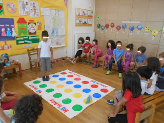 Περνώντας από κάθε στεφάνι αναπαριστούμε το αντίστοιχο συναίσθημα ανάλογα με τη φατσούλα (χαρά, λύπη, φόβο, θυμό)
