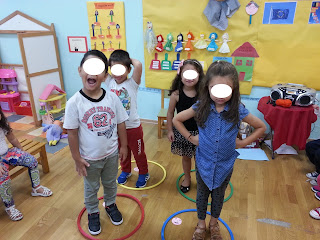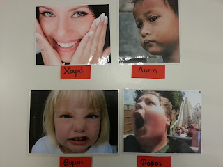 Περνώντας από κάθε στεφάνι αναπαριστούμε το αντίστοιχο συναίσθημα ανάλογα με τη φατσούλα (χαρά, λύπη, φόβο, θυμό)