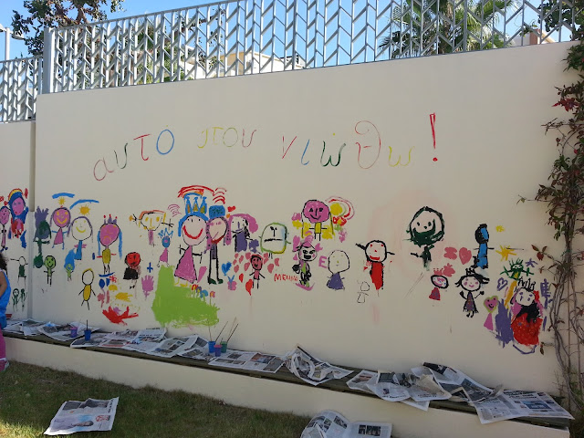 Επειδή τα συναισθήματα μάς πλημμυρίζουν διαρκώς σκεφτήκαμε όχι μόνο να τα εκφράσουμε μέσα την τάξη αλλά και έξω απ΄αυτή. Συγκεκριμένα να τα ζωγραφίσουμε στο τοίχο της αυλής μας. Με τη βοήθεια και την καθοδήγηση της μαμάς της Άρτεμις, Κατερίνα Σφακιανάκη,