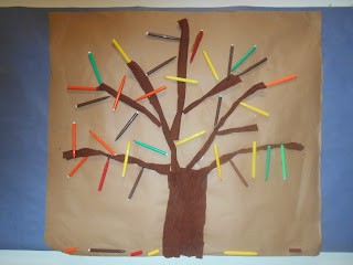 Μαζέψαμε φύλλα φθινοπωρινά, τα παρατηρήσαμε, τα αγγίξαμε, τα θρυμματίσαμε και τέλος τα χρησιμοποιήσαμε για να δημιουργήσουμε μια φθινοπωρινή εικόνα.