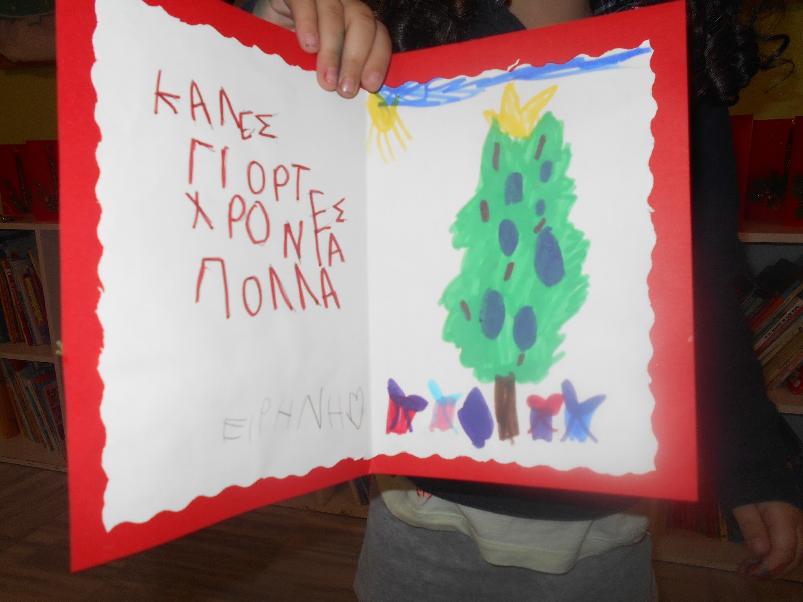 …και δεν παραλείψαμε να κατασκευάσουμε και να γράψουμε τις χριστουγεννιάτικες κάρτες μας.