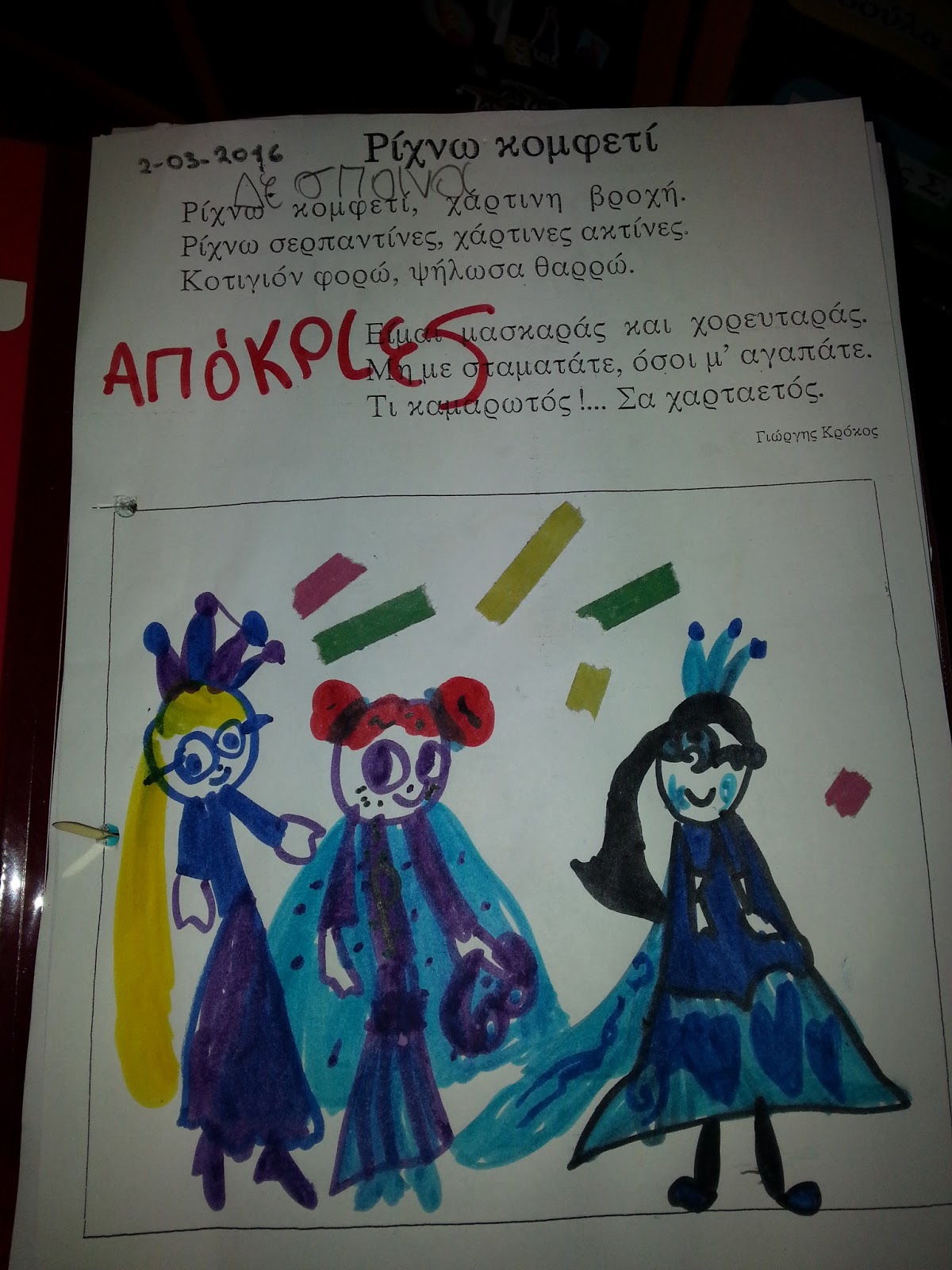 Την Τετάρτη 9-03-2016 διασκεδάσαμε στο χορό του συλλόγου Γονέων και Κηδεμόνων και την Παρασκευή 11-03-2016 ξεφαντώσαμε σε αποκριάτικους ρυθμούς στο χώρο του σχολείου μας!