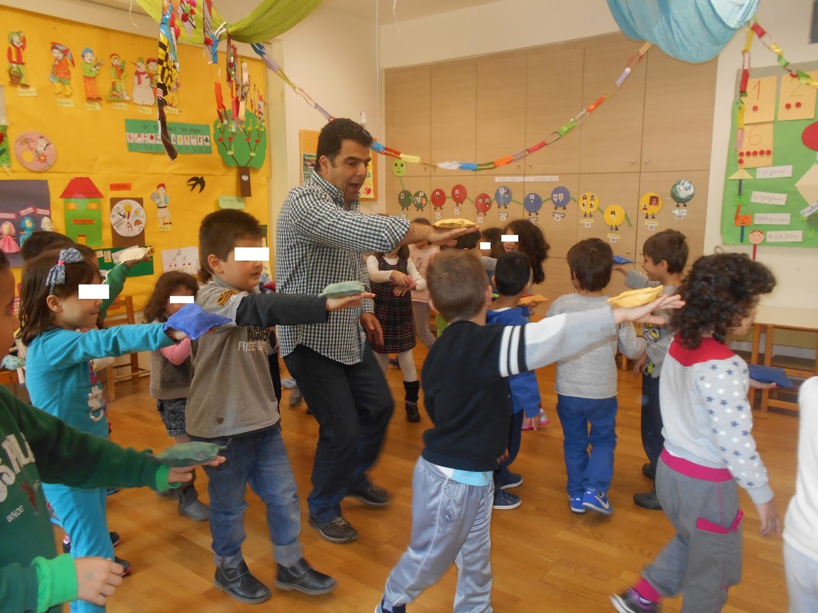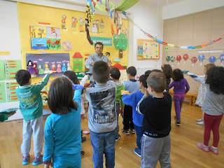 Μια ξεχωριστή νότα ήταν η επίσκεψη του καλού συναδέλφου και μουσικοπαιδαγωγού Πέτρου Τζανάκη, που μαζί με τους βοηθούς του, τις κούκλες “Μελωδένια” και “Ρύθμιο” έπαιξε πολλά μουσικά παιχνίδια με τα παιδιά που πραγματικά το ευχαριστήθηκαν!!!