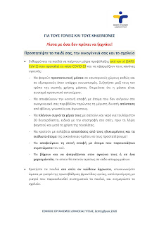 Οδηγίες για νηπιαγωγεία αναφορικά με τη λοίμωξη από το νέο κορωνοϊό SARS-cOV-2(COVID-19)