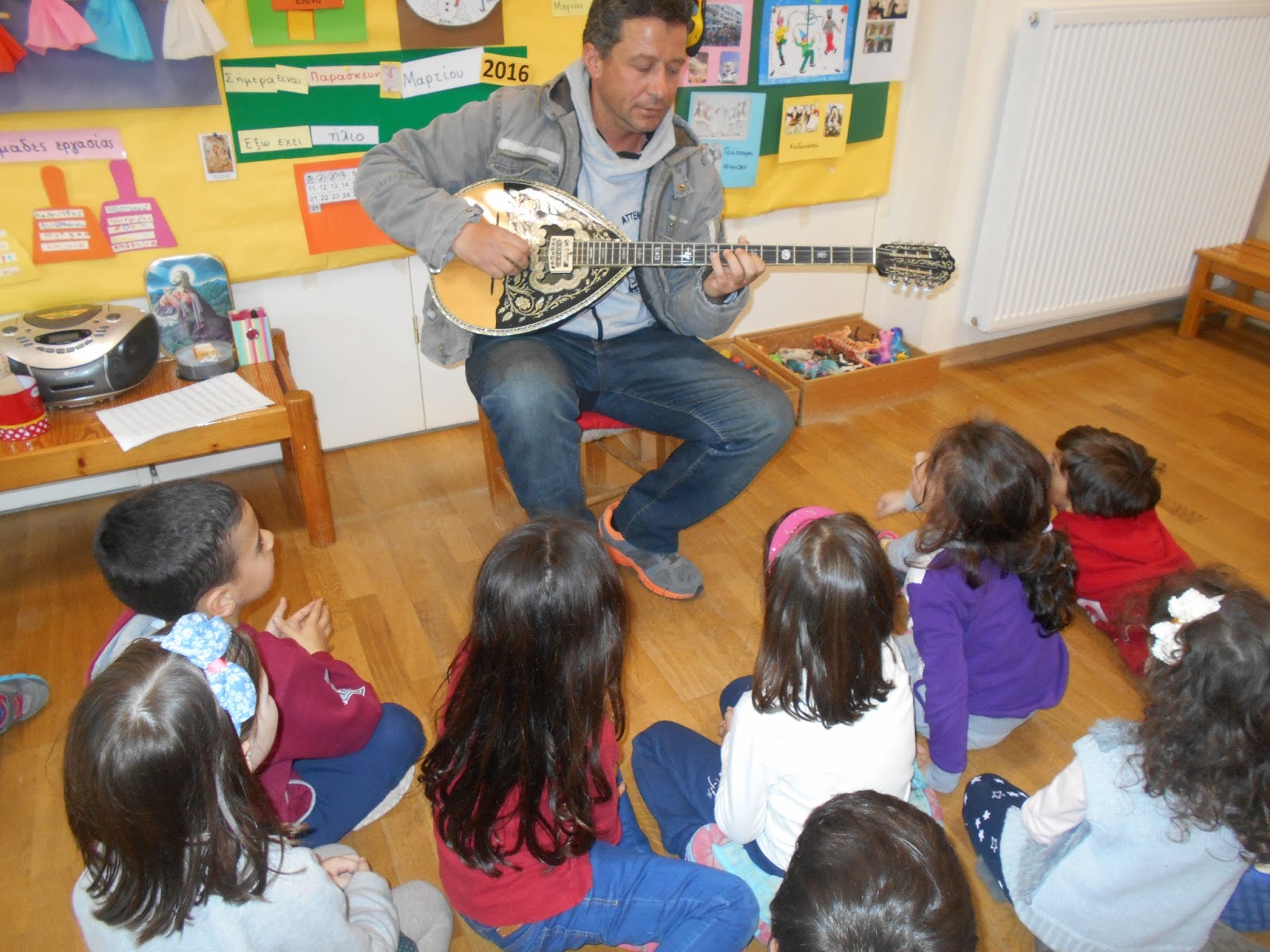 Το σχολείο μας επισκέφθηκαν αρκετοί ερασιτέχνες μουσικοί, κυρίως συγγενείς των μαθητών μας. Έτσι τα νήπια είχαν την ευκαιρία να δουν, να ακούσουν αλλά και να δοκιμάσουν να παίξουν αρκετά μουσικά όργανα. Ευχαριστούμε όλους όσους επισκέφθηκαν το σχολείο μας και συνέβαλαν στο πρόγραμμά μας.