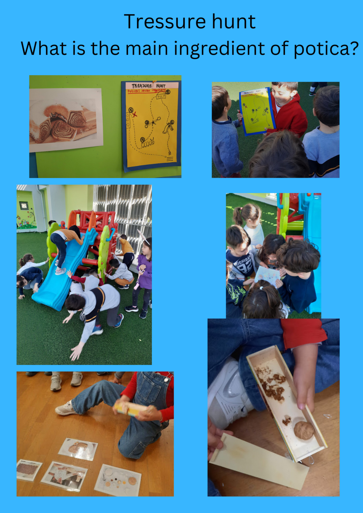 Η Σλοβενία ήταν η χώρα που μας εστειλε τον γρίφο: Ποιο είναι το βασικό υλικό του παραδοσιακού Σλοβένικου Χριστουγεννιάτικου γλυκού που ονομάζεται Πότιτσα? Αφού ακολουθήσαμε πιστά τις οδηγίες του χάρτη, ανακαλύψαμε το κλειδί και ανοίξαμε το κουτί που ο σκίουρος είχε κρύψει το μυστικό υλικό, τα καρύδια!!!