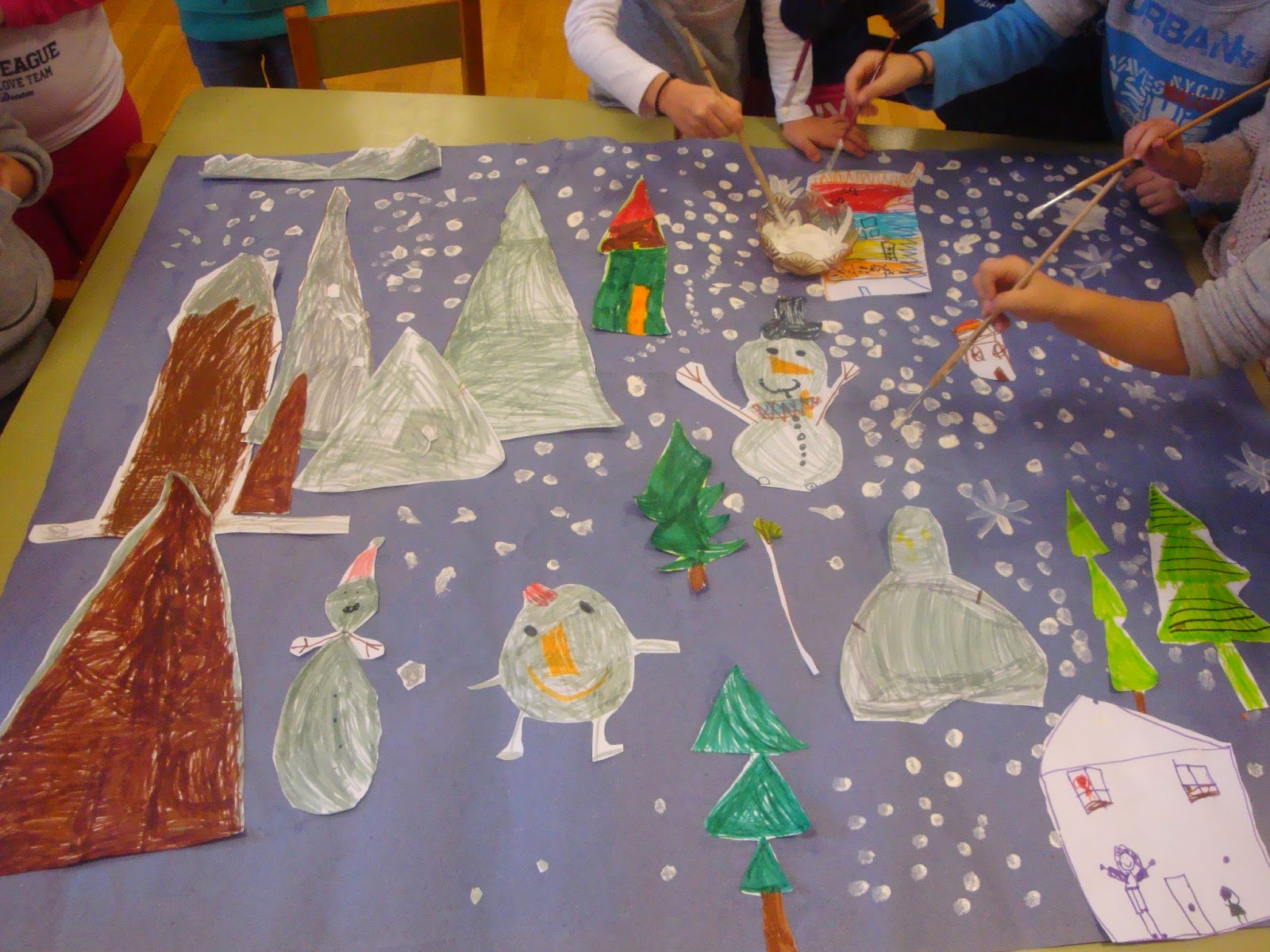 Δημιουργήσαμε επίσης μαγευτικά χειμωνιάτικα τοπία με ζωγραφική, χαρτοκοπτική κολάζ και πολλή φαντασία!