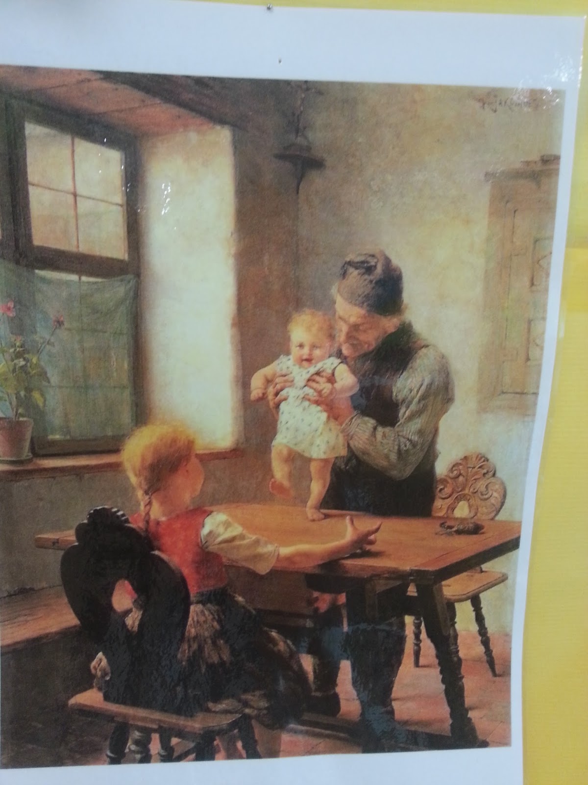 Σήμερα,  με αφορμή την παγκόσμια ημέρα , δόθηκε η ευκαιρία στα παιδιά να μιλήσουν για τον παππού και την γιαγιά τους.(πως τους λένε, τι τους αρέσει να κάνουν μαζί τους, αν μένουν κοντά τους κ.α.).Παρατήρησαν πίνακες ζωγραφικής και τους σχολίασαν:
